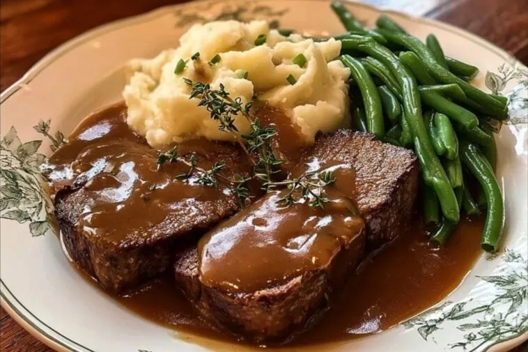 You’ll fall in love with this recipe for all the right reasons. First, it’s budget-friendly and uses humble ingredients you probably already have. It takes about five minutes to assemble and then you can walk away and let your slow cooker do the magic. It’s perfect for weeknight dinners or Sunday suppers. The gravy is rich and luscious, and the meat becomes so tender it barely needs a knife.