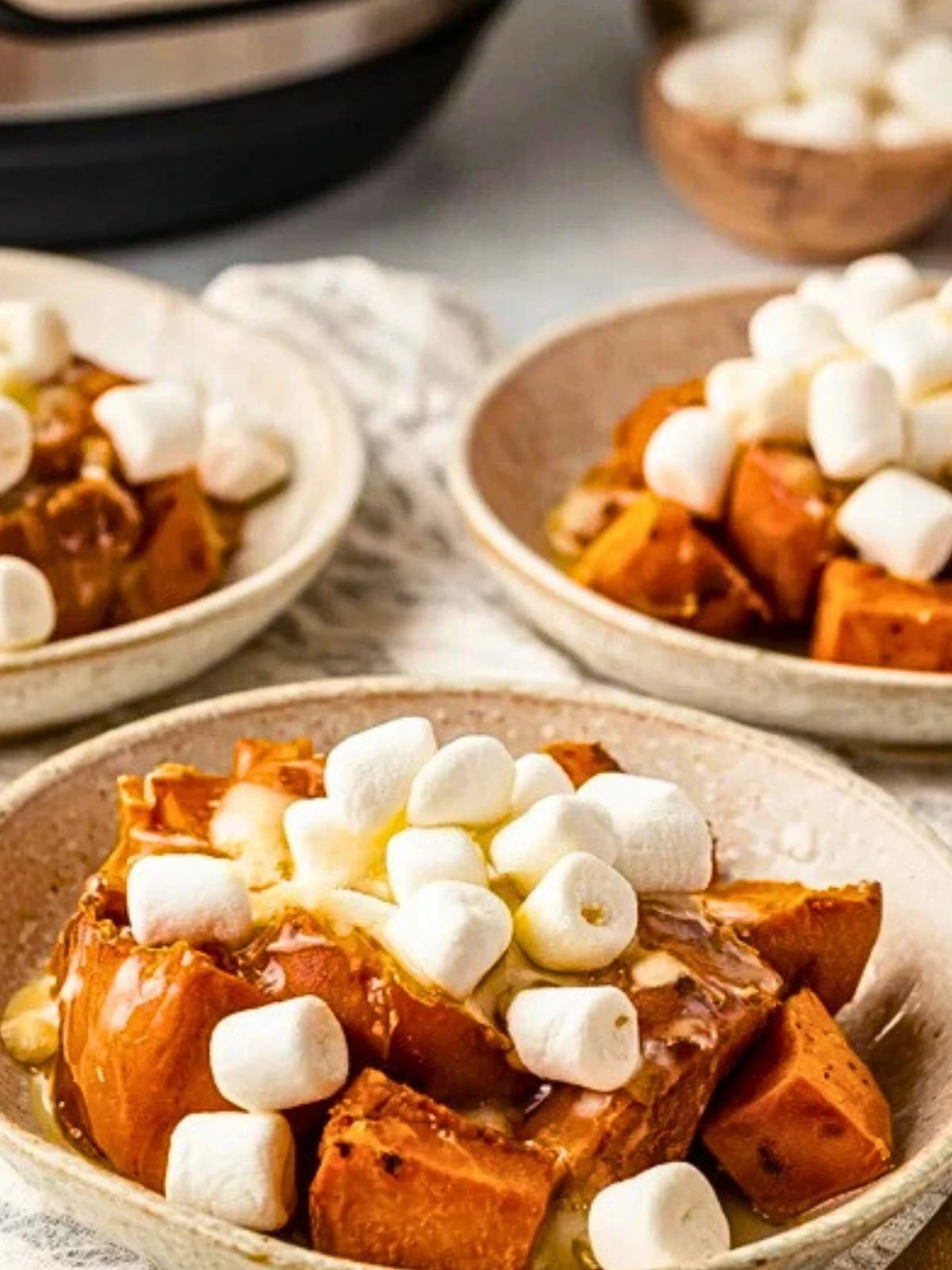 To store leftovers, transfer the sweet potatoes and marshmallows to an airtight container once they’ve cooled. Keep them in the refrigerator for up to 4 days. Reheat in the microwave or in the oven until warmed through and marshmallows are soft again. For longer storage, skip the marshmallows and freeze the sweet potatoes for up to 2 months.
