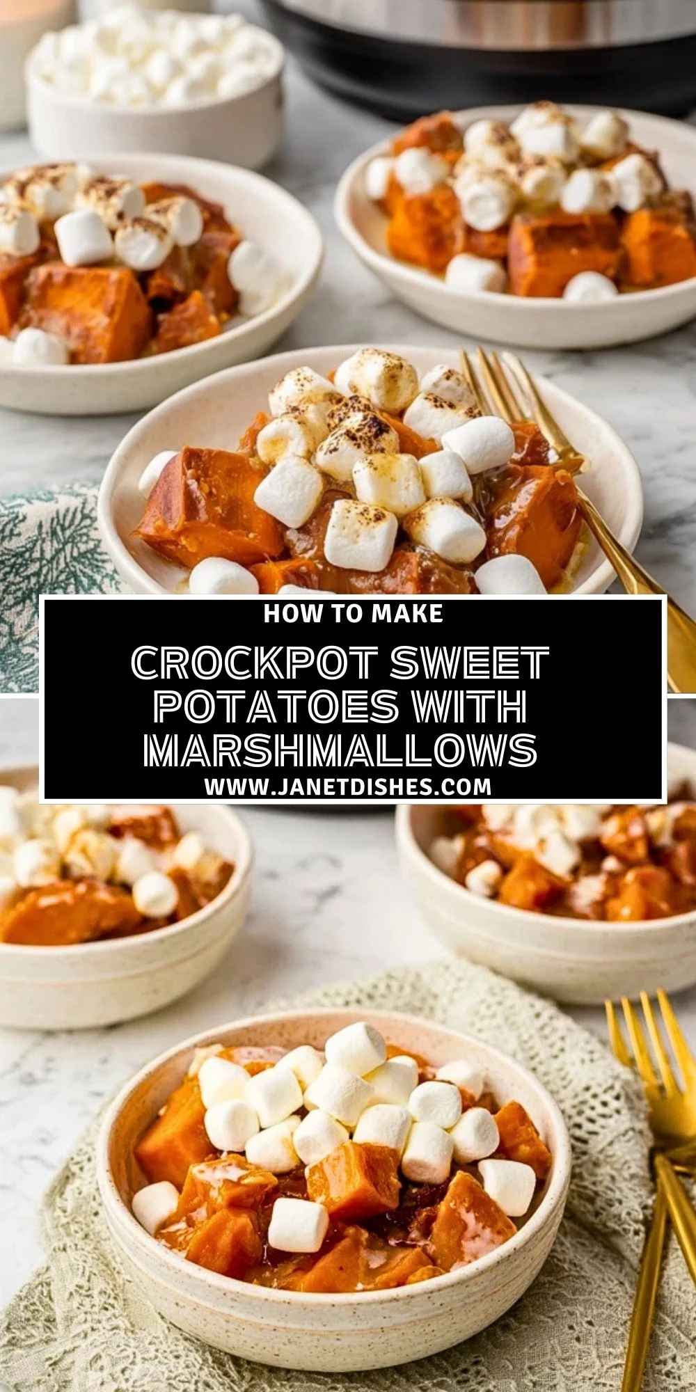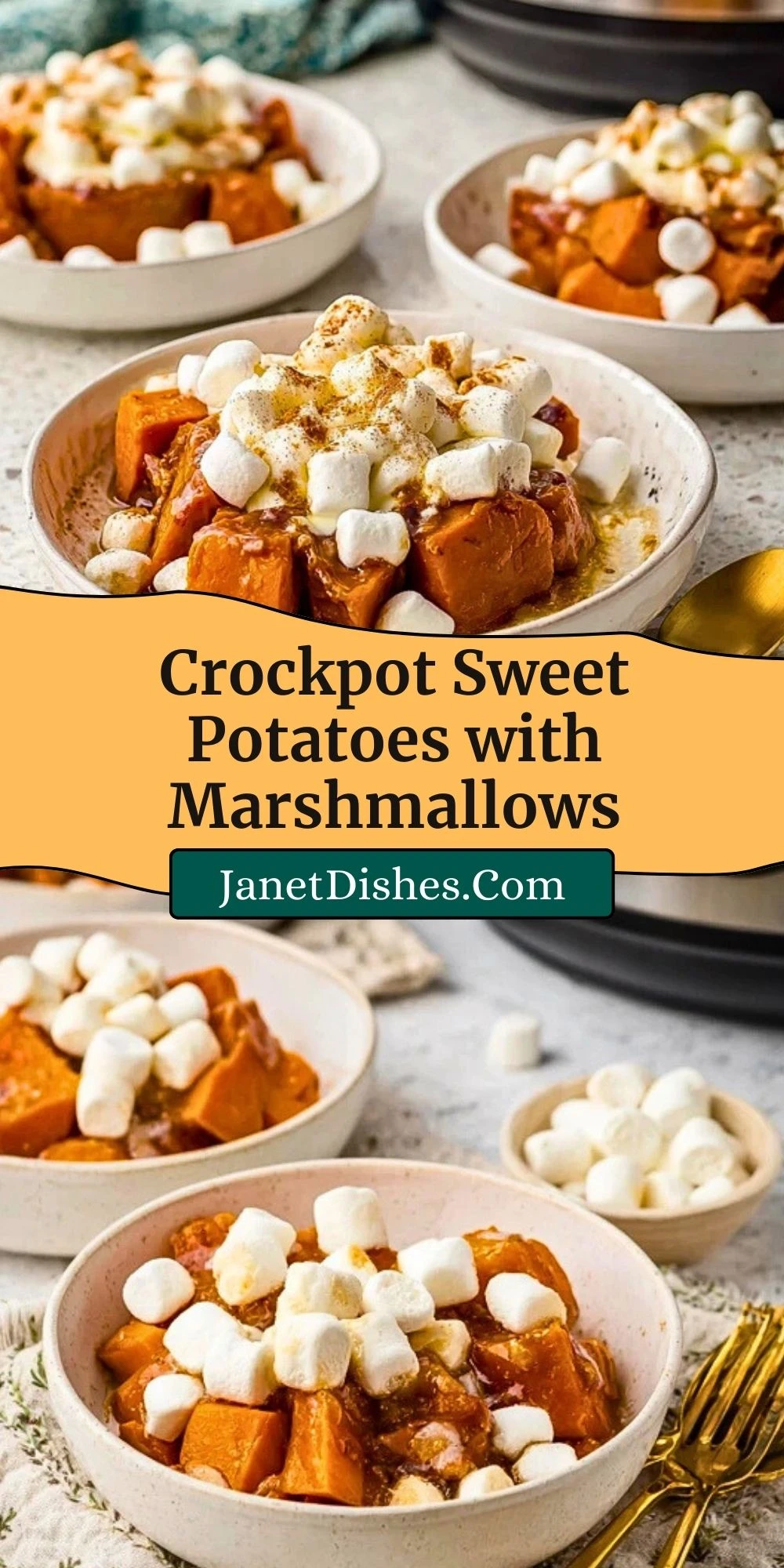 Crockpot Sweet Potatoes with Marshmallows are a classic, comforting side dish perfect for holidays and cozy dinners. This slow cooker sweet potato recipe features tender slices of sweet potato cooked with cinnamon, brown sugar, and butter, then topped with melty mini marshmallows. An easy, hands-off dish that brings nostalgic flavor to your table.