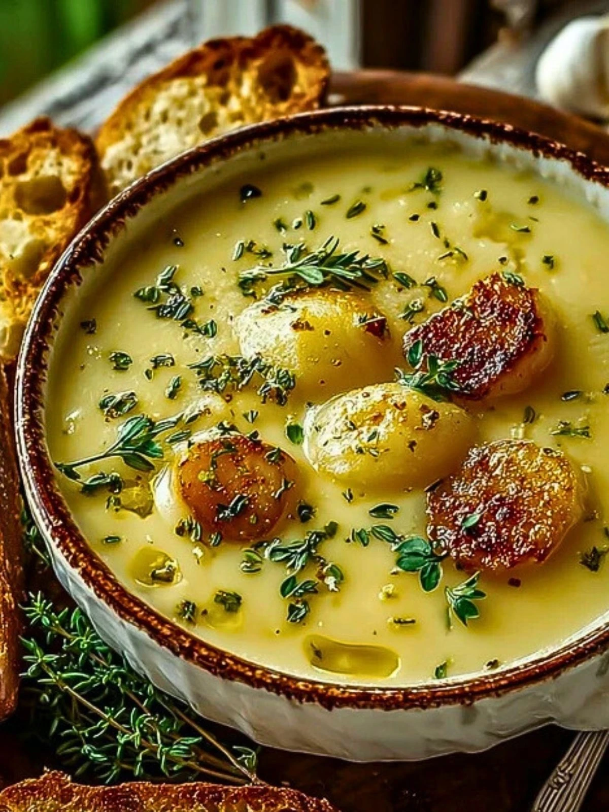 A creamy, comforting dish that echoes the soothing qualities of the garlic soup.