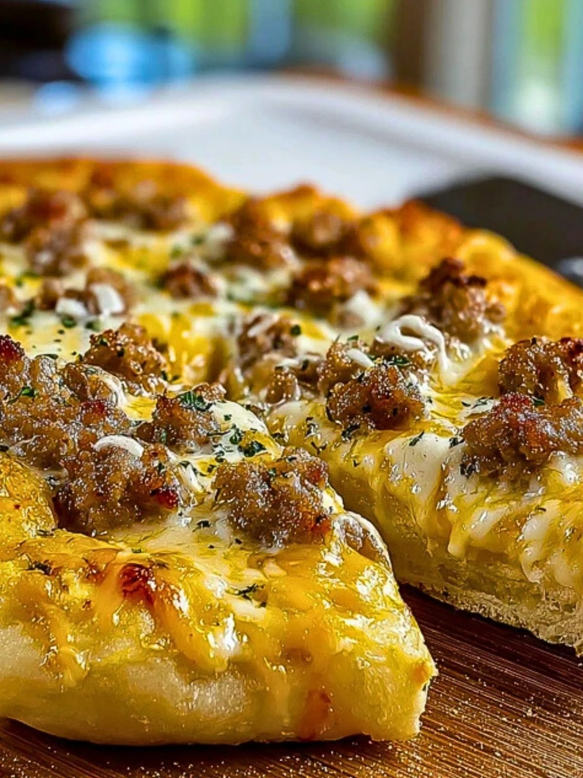 Delicious Sausage Gravy Crescent Roll Breakfast Pizza