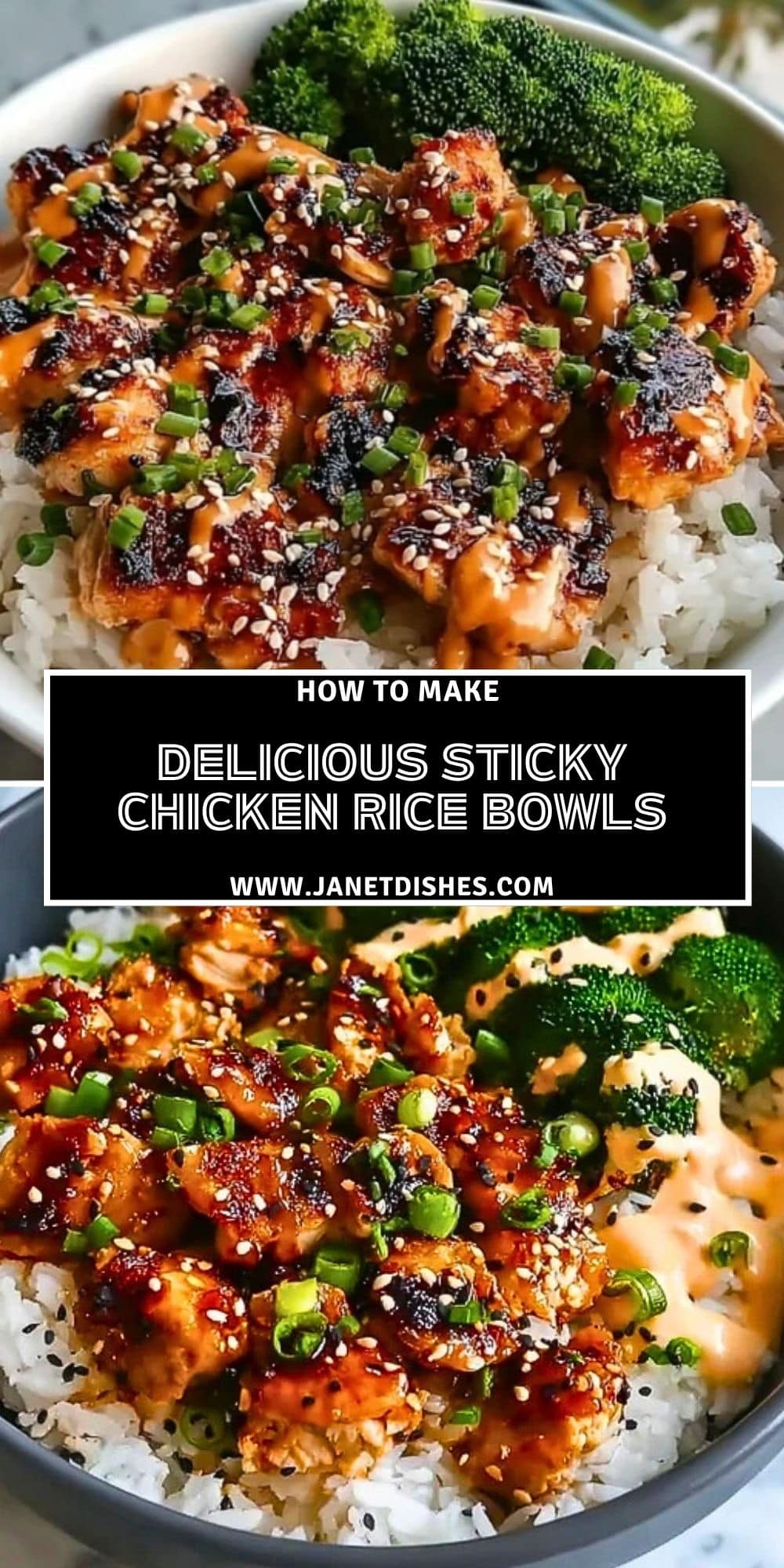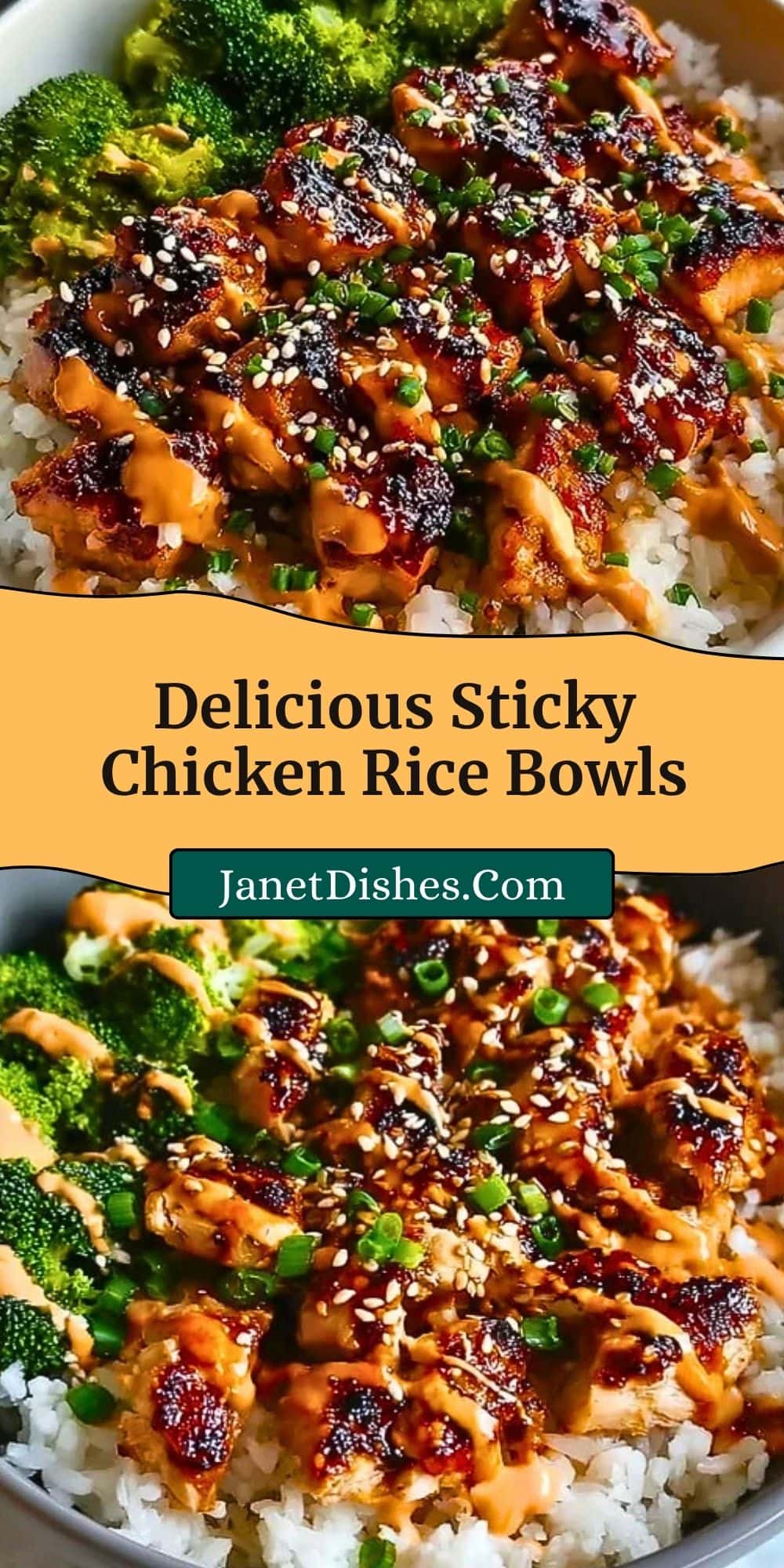 These Delicious Sticky Chicken Rice Bowls are packed with bold garlic and soy glaze, tender chicken, and fluffy rice. A perfect weeknight dinner or lunch meal prep idea, combining sticky sweetness and savory umami. Keywords: sticky chicken, chicken rice bowl, easy weeknight chicken, soy garlic glaze, Asian-inspired chicken recipe.