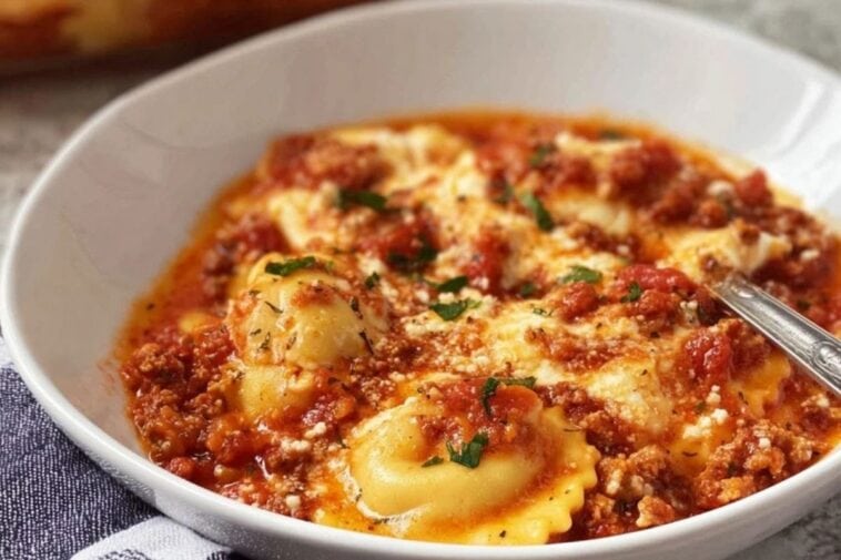 This Easy Baked Ravioli Casserole is a comforting, no-boil pasta dinner layered with cheese-stuffed ravioli, rich marinara, and gooey mozzarella. A perfect weeknight meal that’s freezer-friendly, family-approved, and easy to customize.