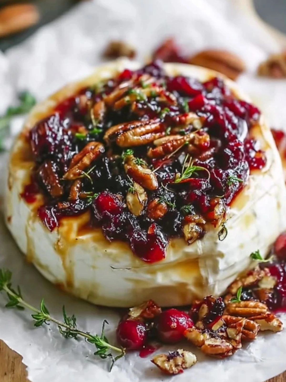 Whether you’re hosting a festive gathering or just want something indulgent for a cozy night in, this baked brie brings elegance with zero stress. The combination of gooey cheese, flaky crust, and sweet-savory toppings creates a contrast of textures and flavors that feels like a warm hug on a plate.