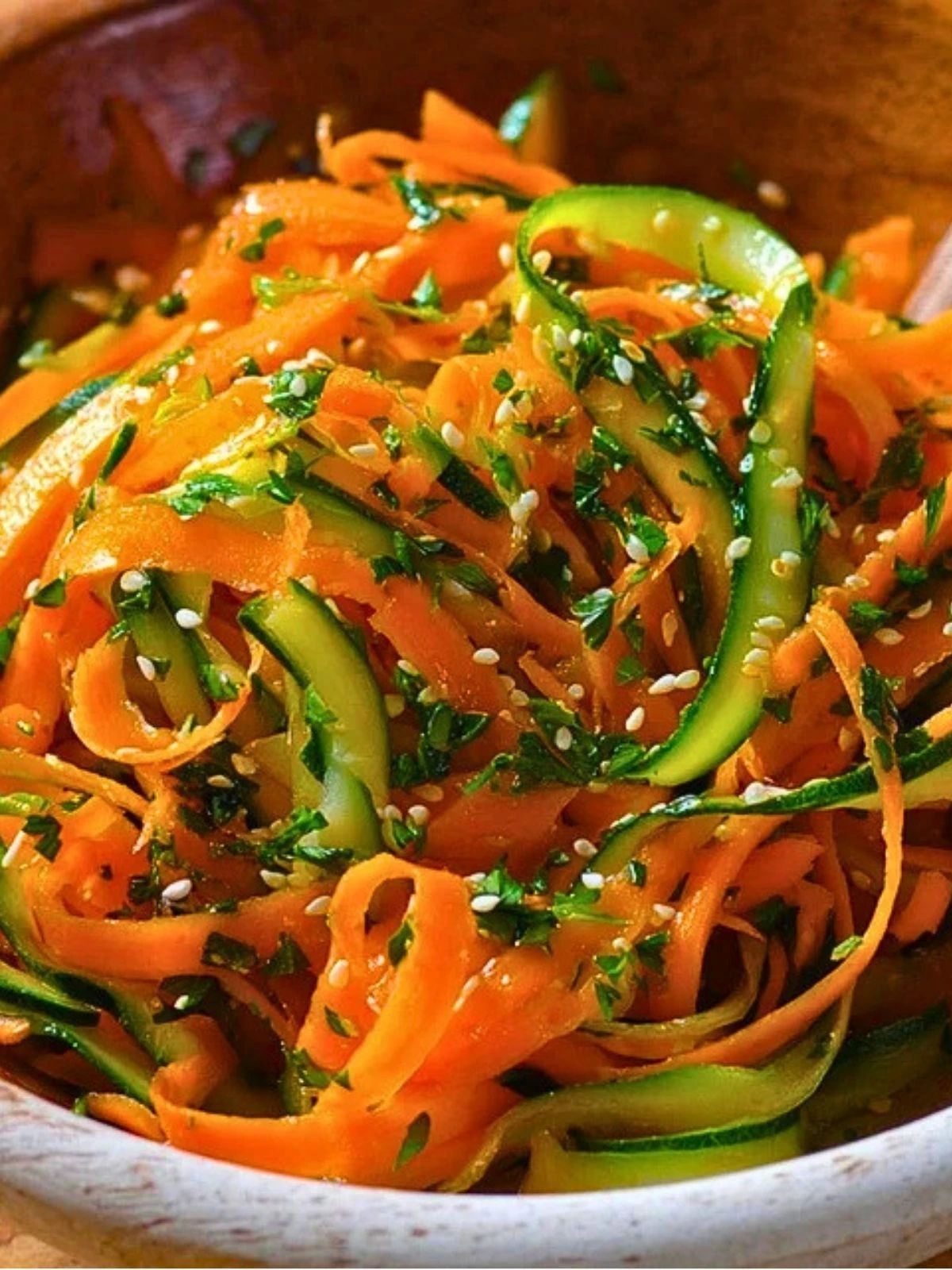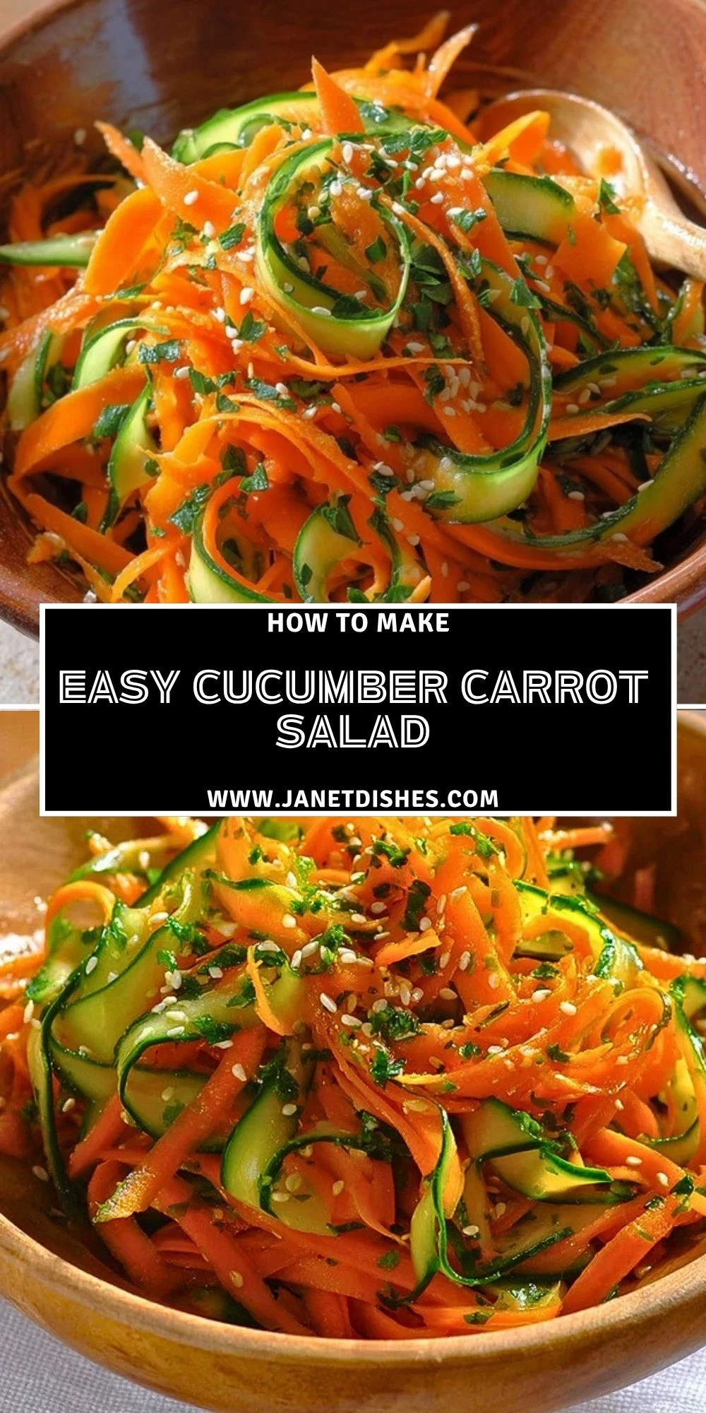 This salad is one of those simple recipes that delivers more than you expect from such basic ingredients. It has a clean, crisp texture that feels especially good on warm days, but it also works year round when you need a lighter side on the table. The cucumbers bring freshness, the carrots add natural sweetness and crunch, and the dressing gives the whole dish a lively finish.