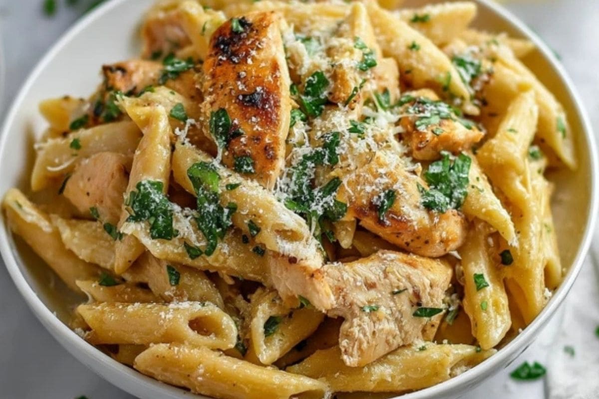 This Easy Garlic Parmesan Chicken Pasta is a creamy, one-pot comfort food made with juicy chicken, parmesan cheese, garlic, and pasta. Perfect for busy weeknights or a cozy weekend dinner, it’s a quick and satisfying recipe the whole family will love. Try this easy chicken pasta today!