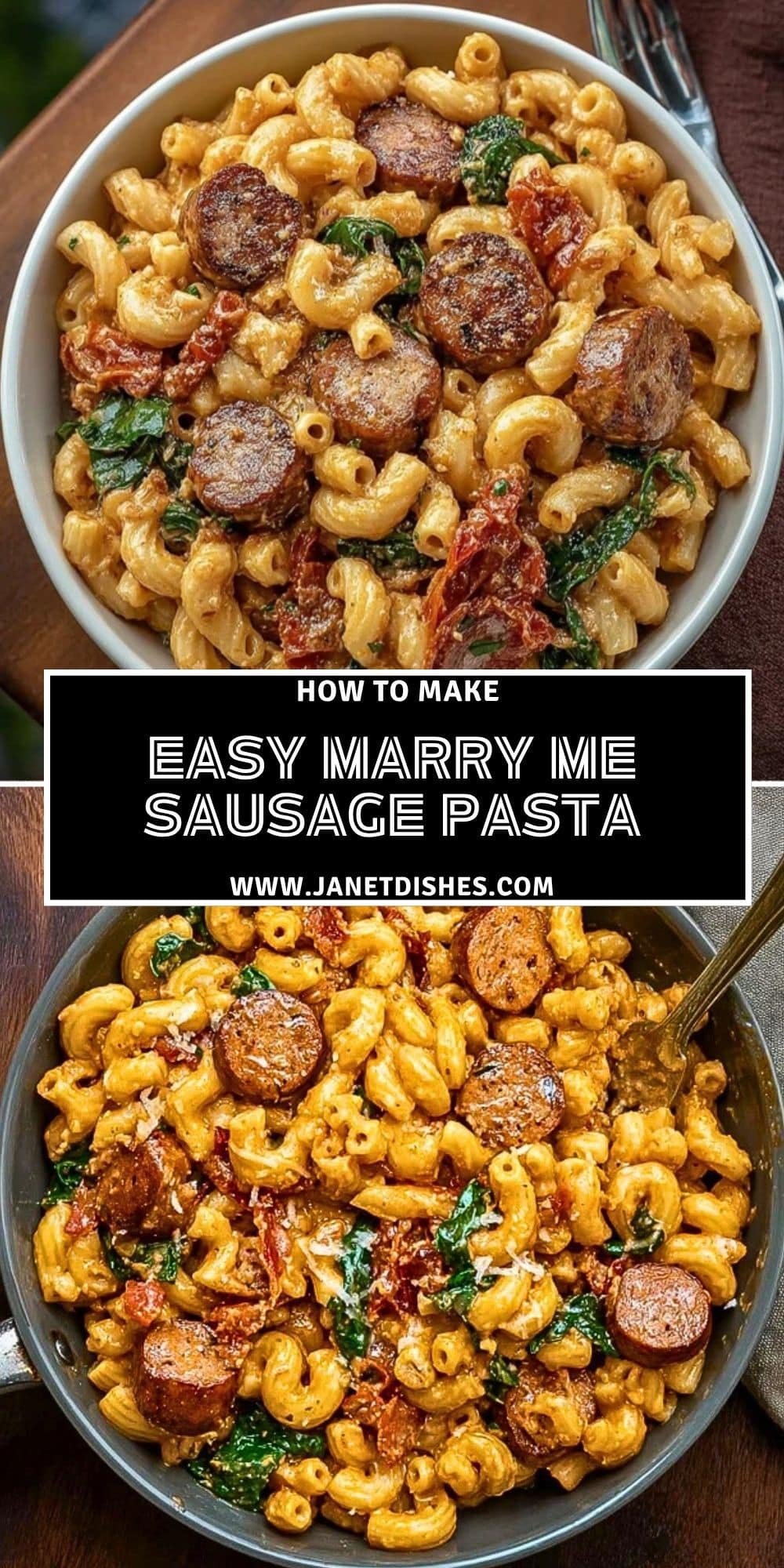A creamy and savory Easy Marry Me Sausage Pasta recipe made with Italian sausage, sun-dried tomatoes, garlic, heavy cream, and parmesan. This irresistible 30-minute dinner is perfect for date night or a cozy weeknight meal. Ideal comfort food with bold flavor and easy cleanup. Great with arugula salad, roasted veggies, or garlic bread.