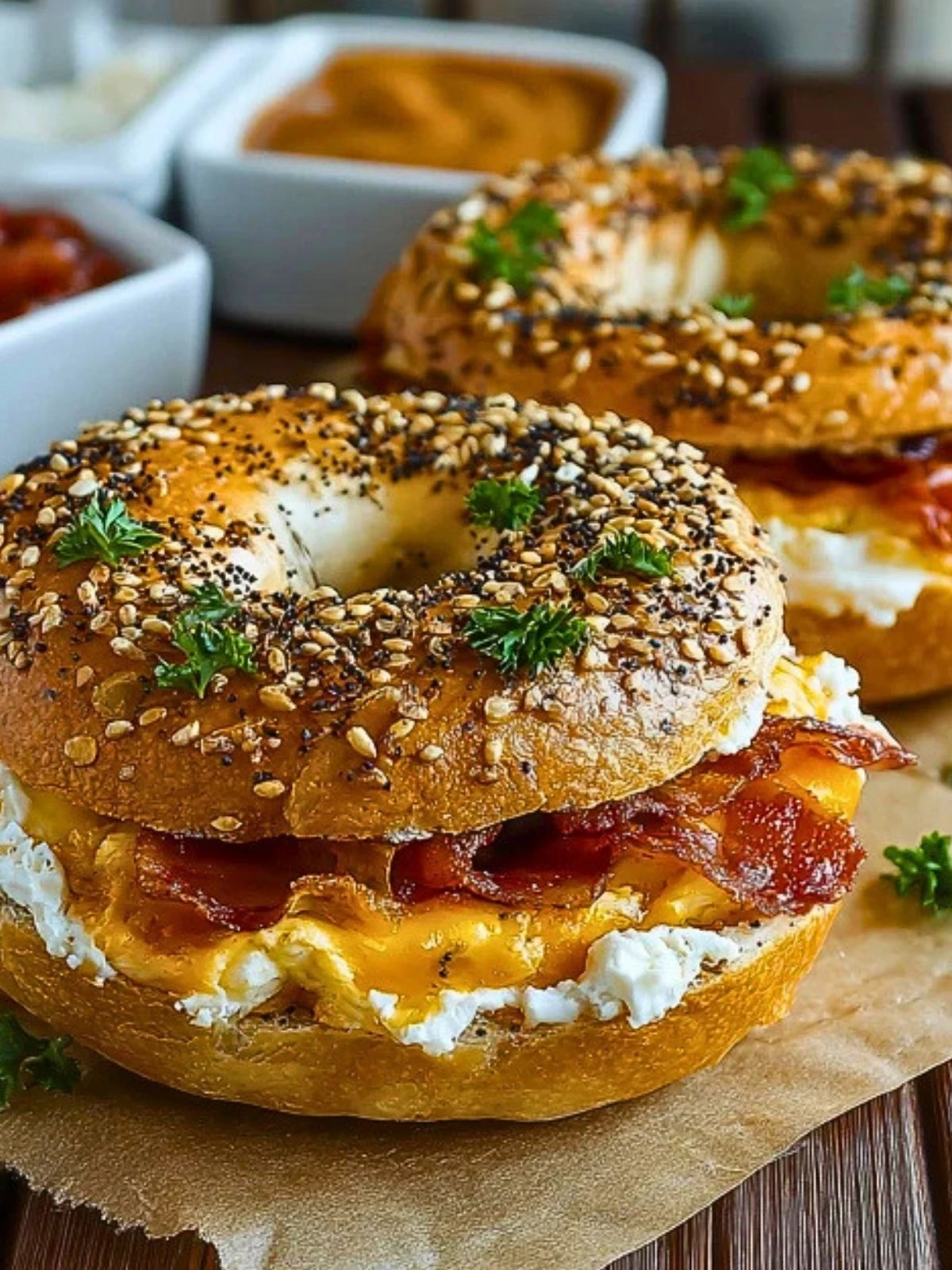Let the stuffed bagels rest for a few minutes before serving. This gives the filling time to settle and makes them easier to pick up. Serve warm while the cheese is still soft and the bagels are lightly crisp around the edges.