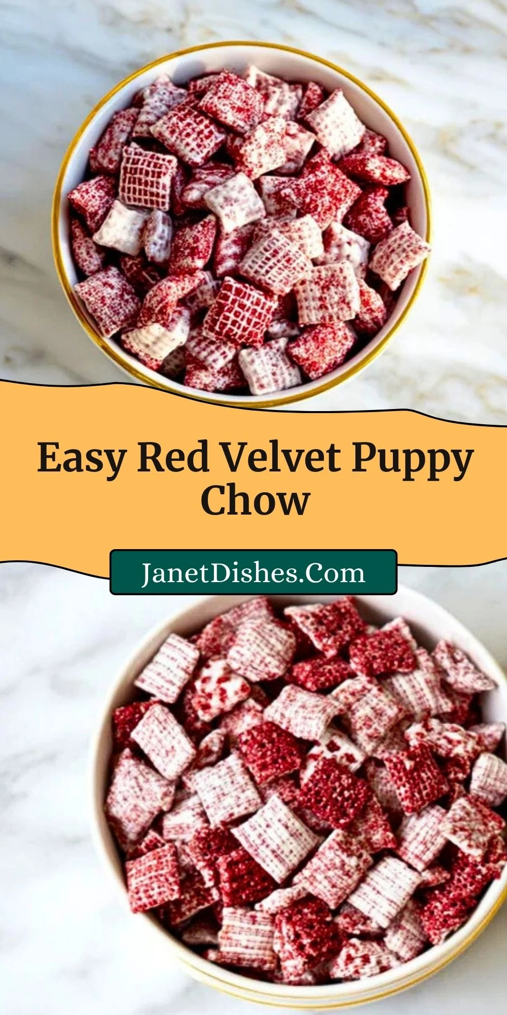 This Easy Red Velvet Puppy Chow is the ultimate no-bake treat with bold red velvet flavor, creamy white chocolate coating, and a sweet powdered sugar finish. Perfect for parties, holidays, or snacking. Red velvet muddy buddies recipe made simple.