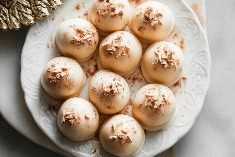 These Eggnog Truffles are rich, creamy, no-bake holiday treats made with white chocolate, eggnog, and warm spices. Perfect for dessert platters, edible gifts, or festive snacking, they bring holiday cheer in every bite. This easy eggnog truffle recipe is ideal for Christmas, New Year’s, or any winter celebration.