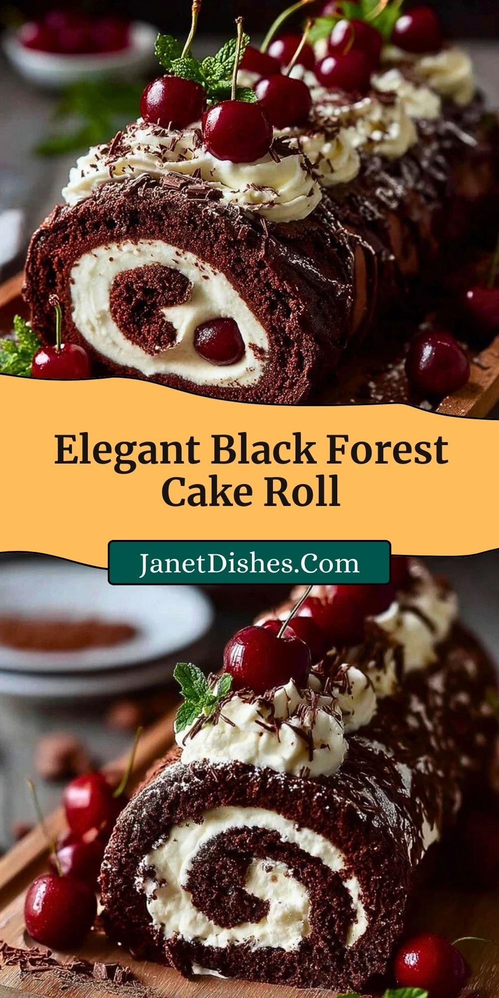 A classic dessert with a show-stopping twist, this Elegant Black Forest Cake Roll is rich, luscious, and absolutely irresistible. Imagine a soft chocolate sponge rolled with fluffy whipped cream and juicy dark cherries, all encased in a silky ganache glaze. It captures all the drama of the traditional Black Forest cake but with a more refined presentation that slices beautifully.