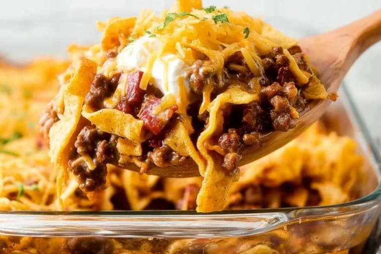Traditionally made by opening a bag of Fritos and pouring chili right on top, this recipe elevates the classic version into something you can proudly serve straight from the oven. Think layers of seasoned ground beef, rich chili beans, melty cheese, and of course, those iconic corn chips that keep their crunch under a gooey layer of cheddar.