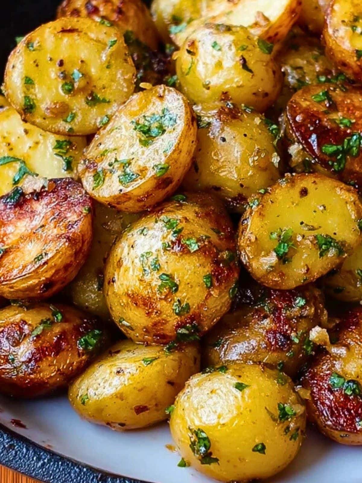 Once crispy, toss the potatoes in the garlic butter to coat evenly. Sprinkle with salt, pepper, and freshly chopped parsley. Serve hot and watch them disappear!