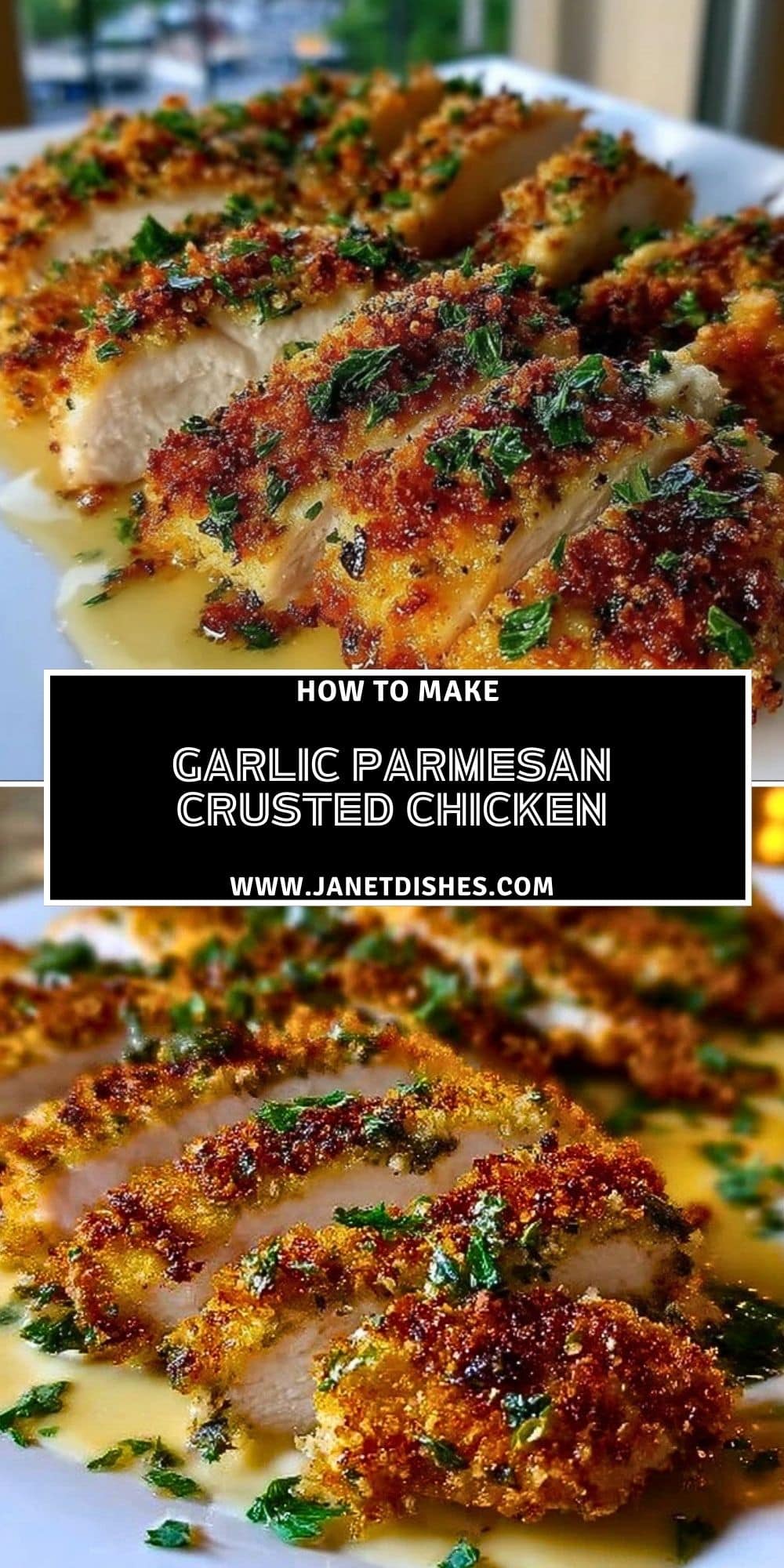 This recipe feeds 4 people generously and is a great option for both casual weeknight dinners and impressive weekend meals. Once baked, Garlic Parmesan Crusted Chicken is best served immediately while the crust is still hot and crispy. You can slice it and serve over pasta, pair it with mashed potatoes, or layer it onto a sandwich for a crunchy upgrade.
