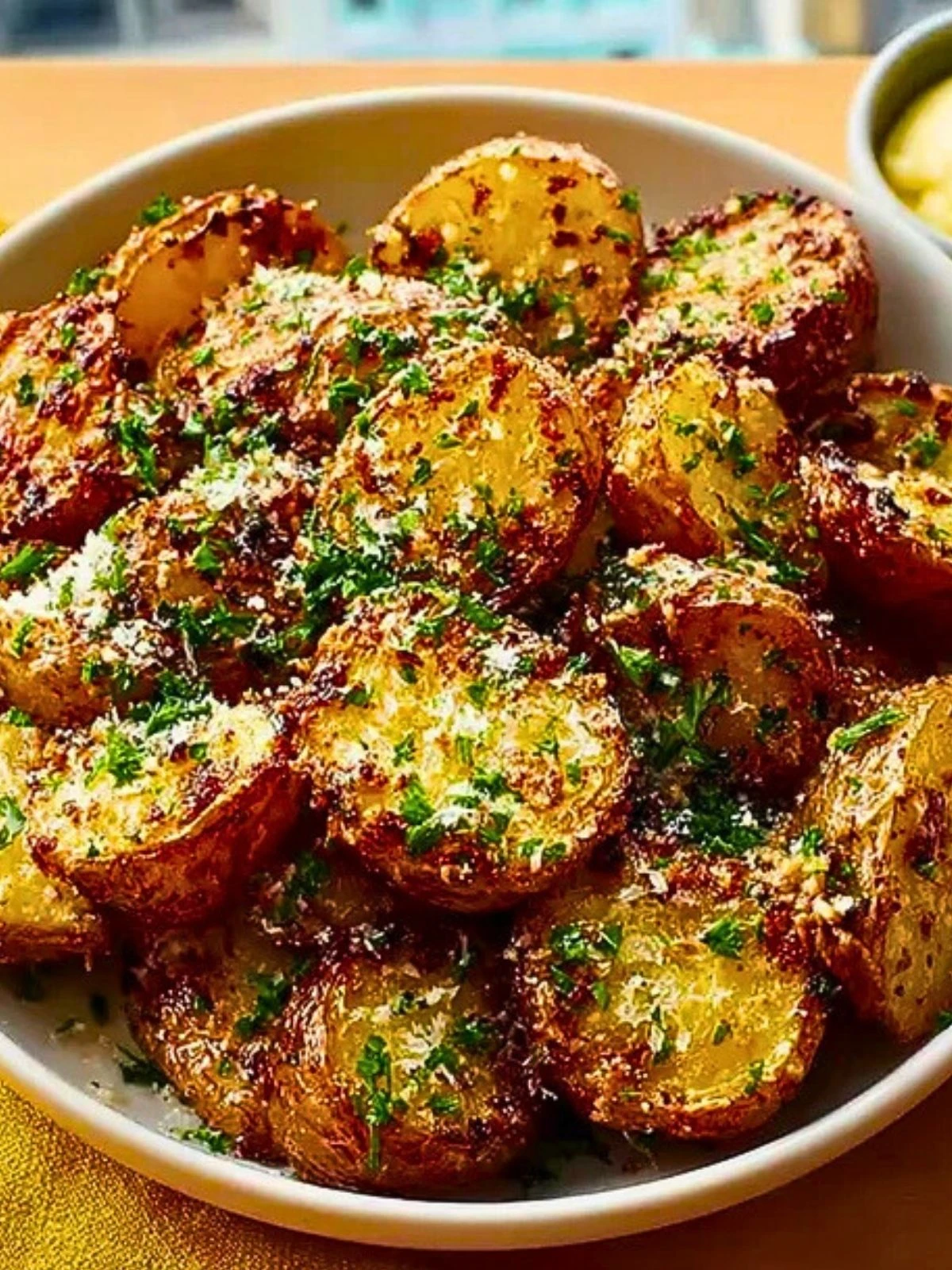 Garlic Parmesan Roasted Potatoes are a crispy, flavorful side dish made with baby potatoes, fresh garlic, Parmesan cheese, and Italian herbs. Perfect for weeknights or holiday meals, these golden potatoes pair well with chicken, beef, or vegetarian mains. Easy, gluten-free, and crowd-pleasing.