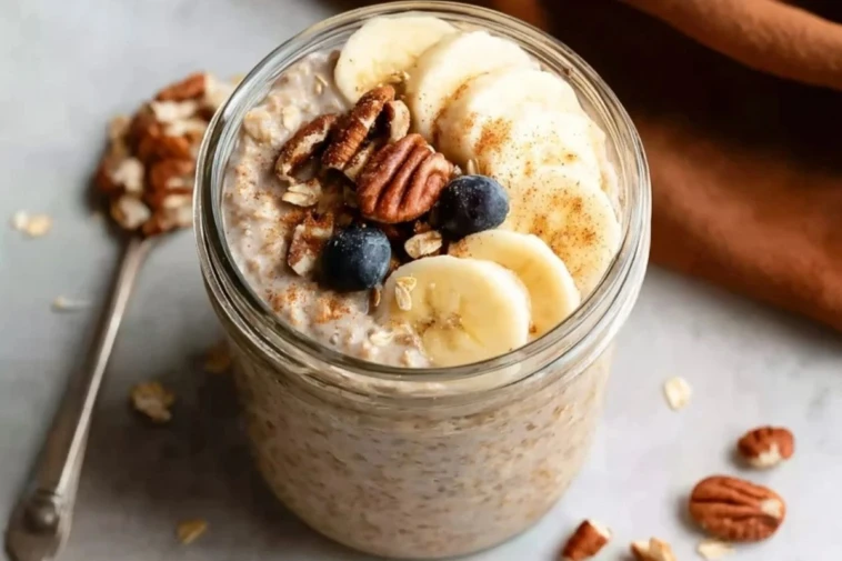 Gluten-Free Cinnamon Banana Bread Overnight Oats is a healthy, make-ahead breakfast packed with fiber, natural sweetness, and warm cinnamon flavor. These easy overnight oats combine ripe banana, gluten-free oats, and chia seeds for a creamy, nourishing meal perfect for busy mornings, meal prep, and clean eating routines.