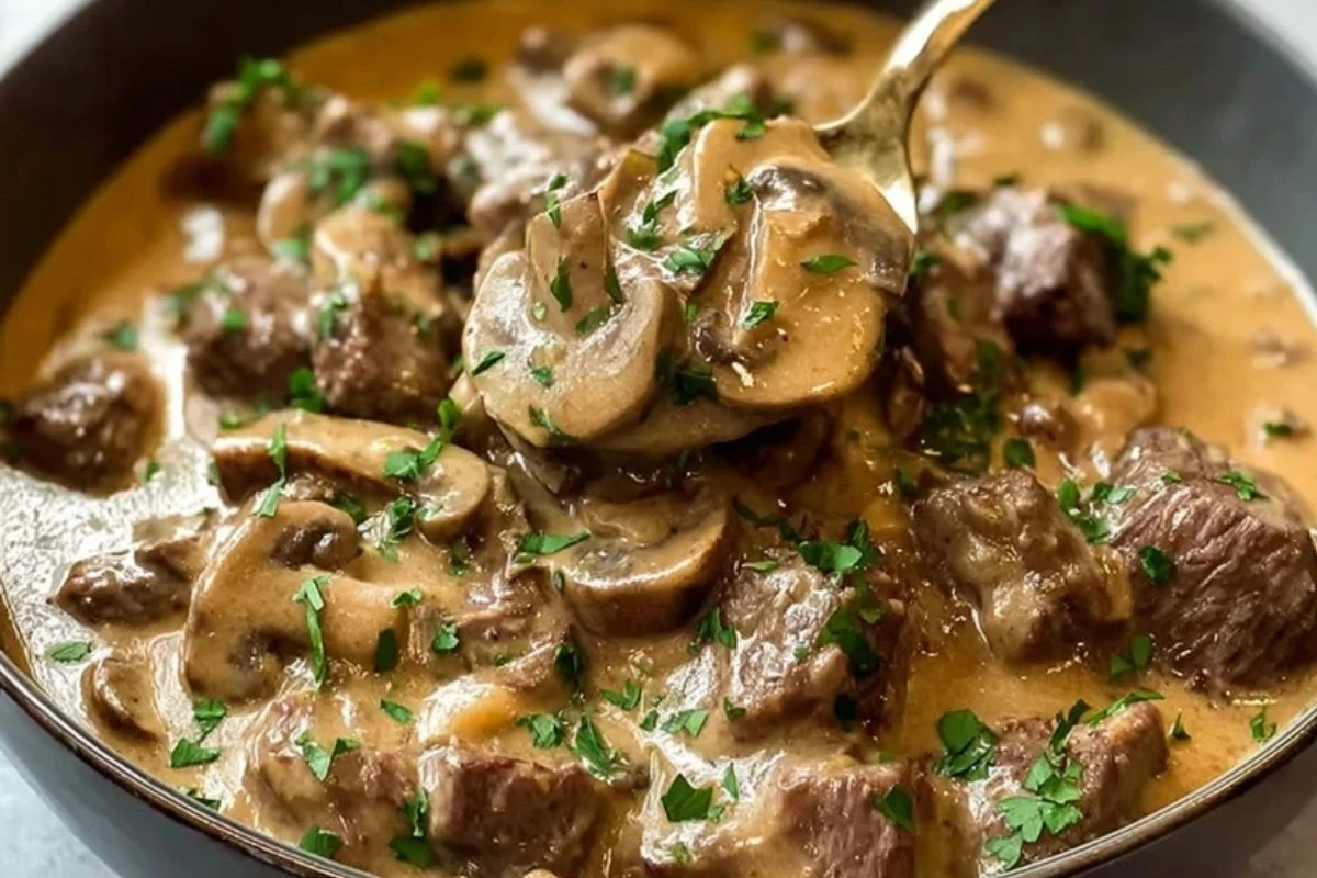 This dish serves 4 generously and is best served immediately while the sauce is luscious and the beef is tender. If you have leftovers, store them in an airtight container in the fridge for up to 3 days. Reheat gently on the stove to preserve the creaminess of the sauce—avoid boiling it, as the sour cream may separate.