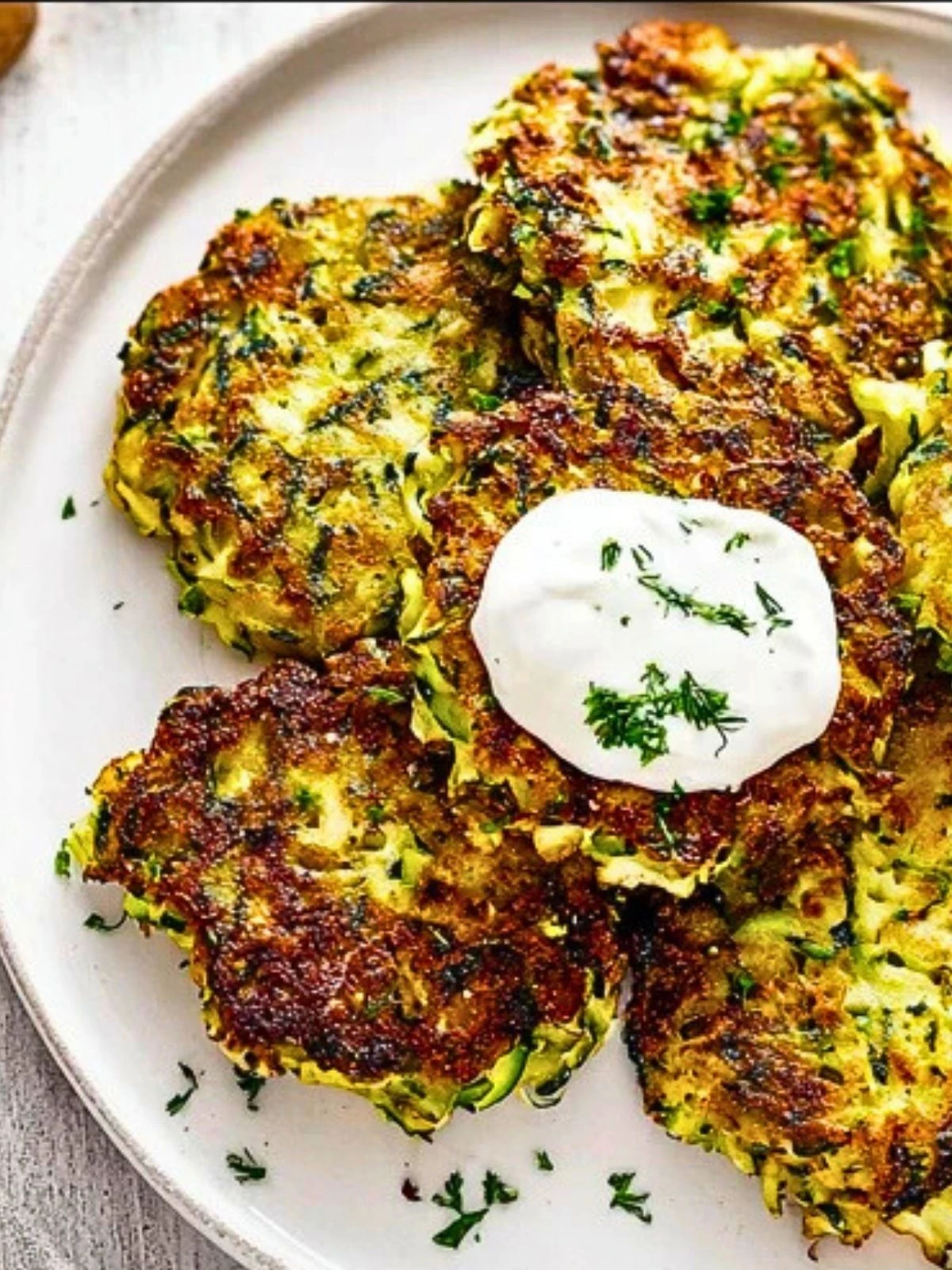 These healthy zucchini fritters serve about 4 people as a side dish or light lunch. They’re best enjoyed warm, paired with a creamy yogurt sauce, sour cream, or even a simple lemon wedge. If serving for brunch or dinner, they make a wonderful companion to grilled meats or fresh salads.