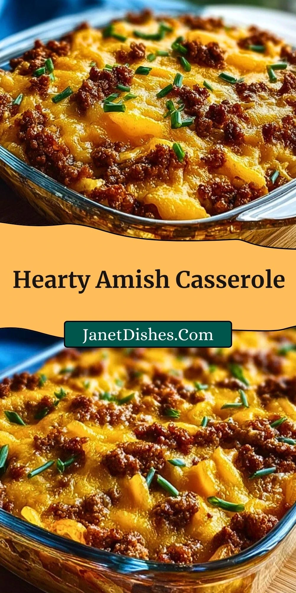 This hearty Amish casserole is a comforting, budget-friendly dish made with ground beef, egg noodles, creamy mushroom soup, and cheddar cheese. Perfect for weeknight dinners or potlucks, this easy Amish casserole recipe is rich, satisfying, and ideal for family meals.