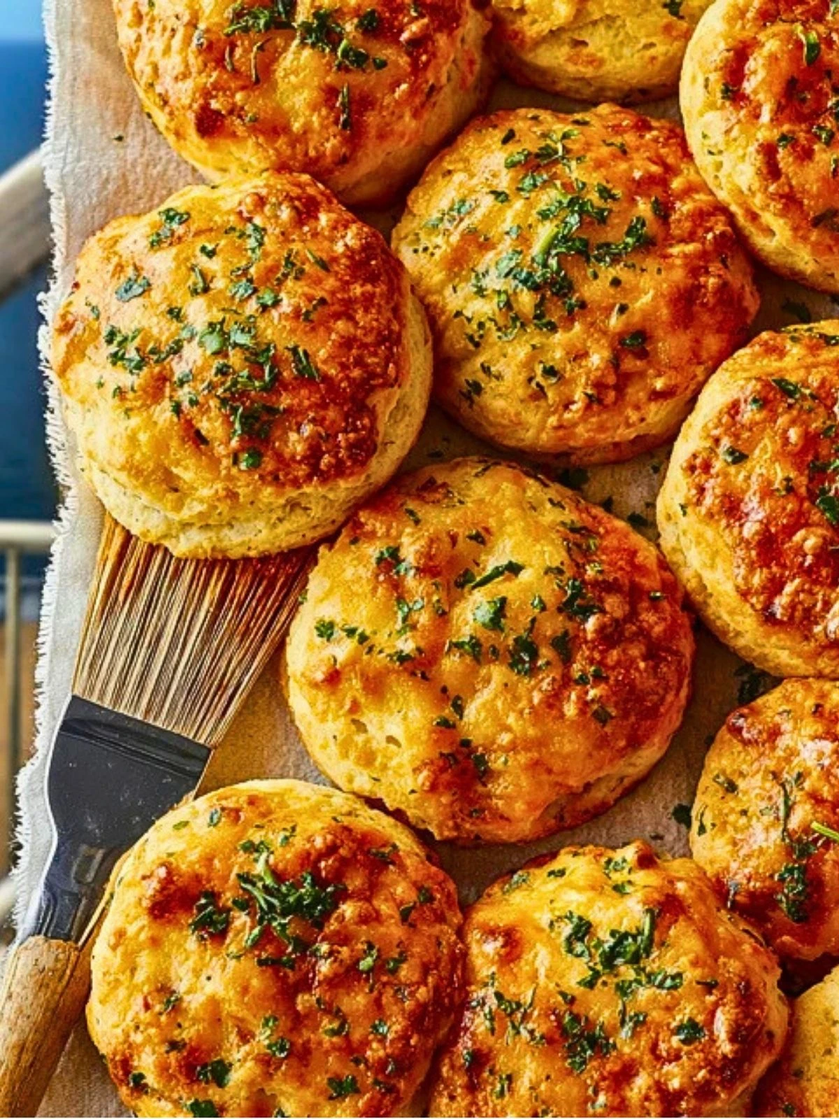 9. Brush the warm biscuits generously with the garlic butter topping.