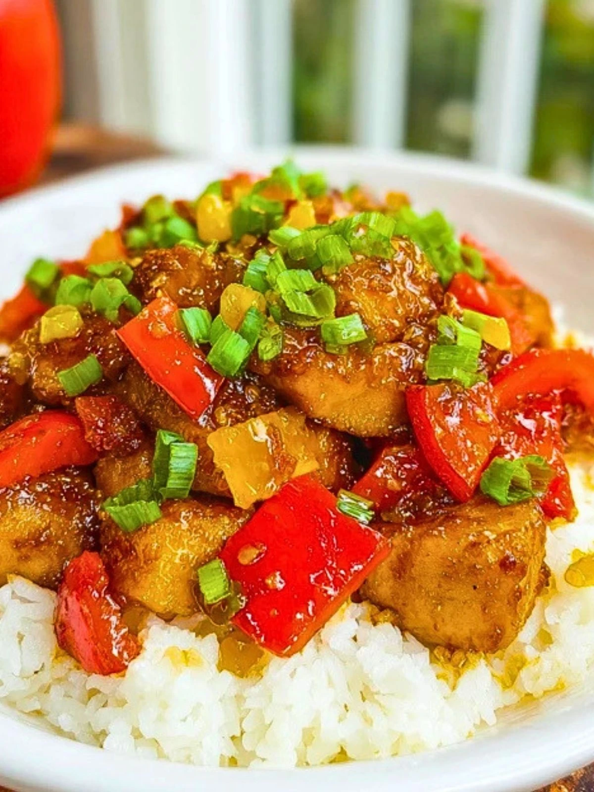This recipe comes together in a few easy stages, and each one helps build flavor. First the chicken gets seasoned and seared until golden, then the sauce is mixed and simmered until thick and glossy. Once everything is tossed together, all that is left to do is spoon it onto a plate and enjoy.