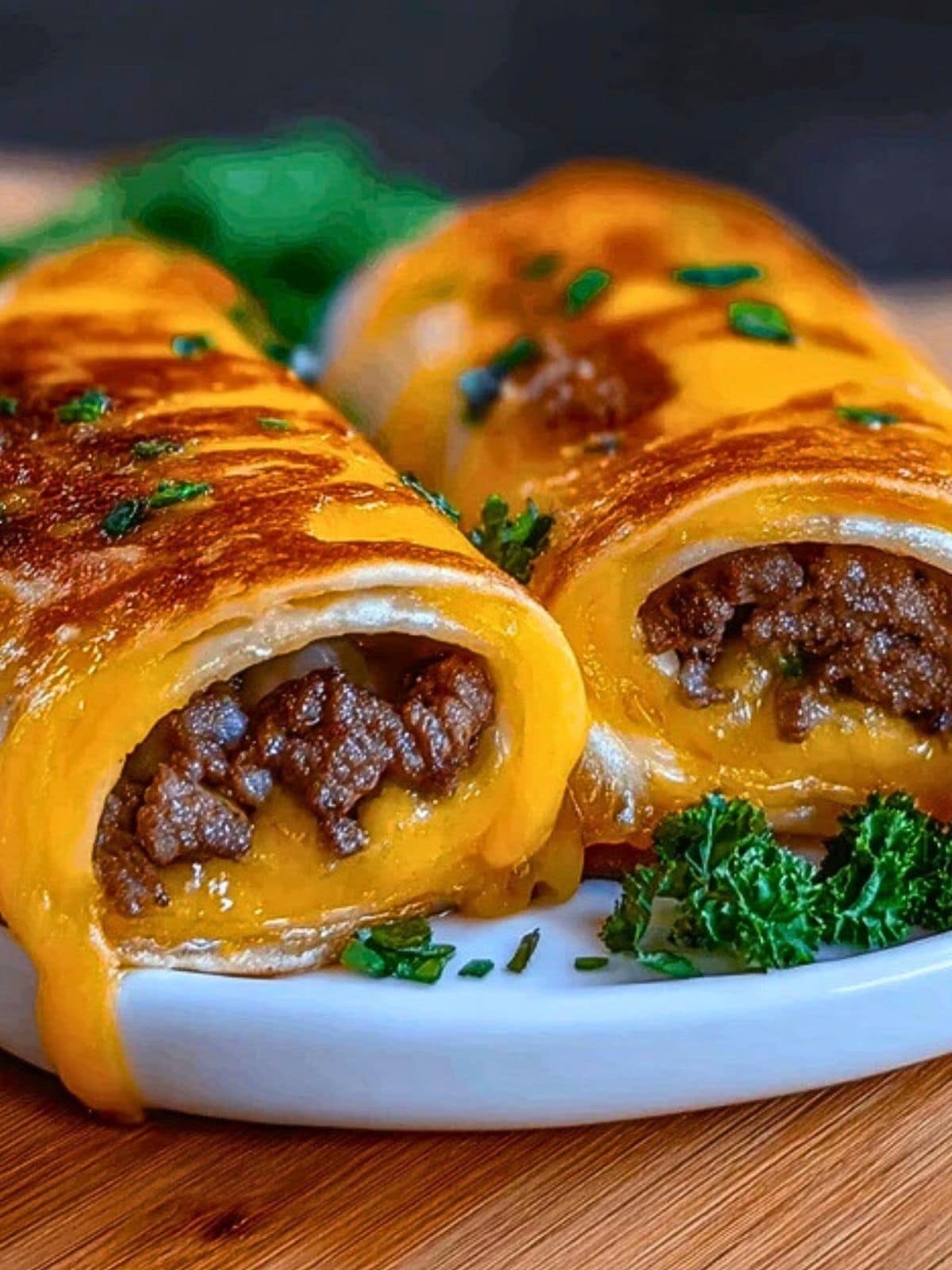 Irresistible Garlic Butter Cheeseburger Rollups are the ultimate handheld comfort food packed with savory ground beef, cheddar cheese, and golden crescent roll dough brushed with garlic butter. This easy appetizer or weeknight dinner idea combines everything you love about a cheeseburger in a soft, crispy rollup. Perfect for game days, family meals, or party snacks.