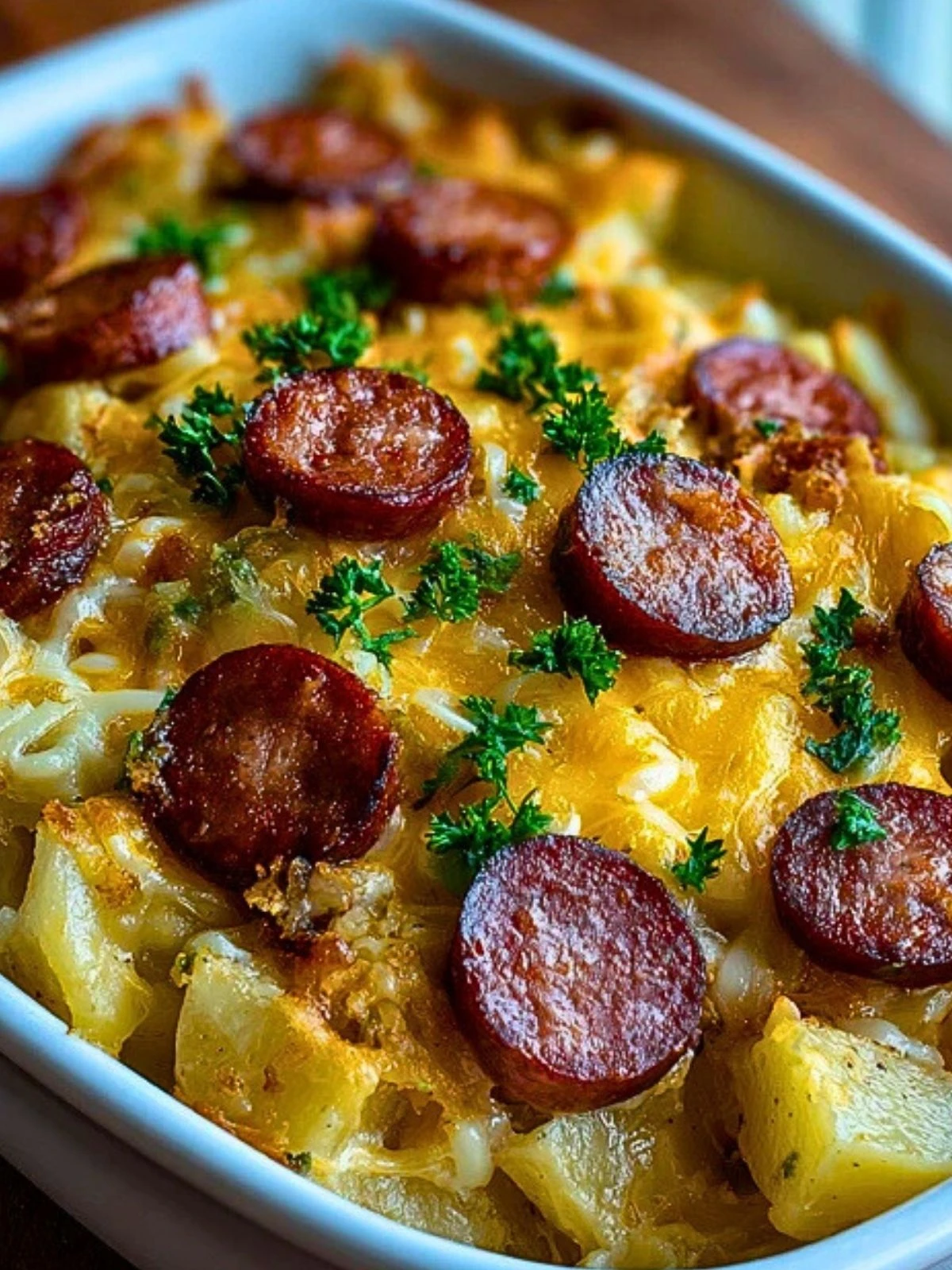 Kielbasa Sausage Cheesy Potato Casserole