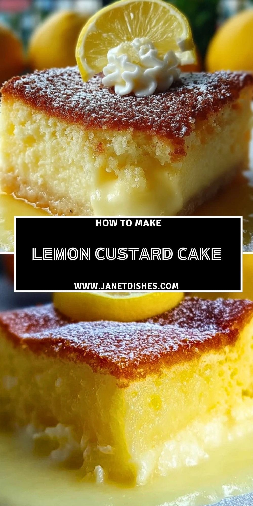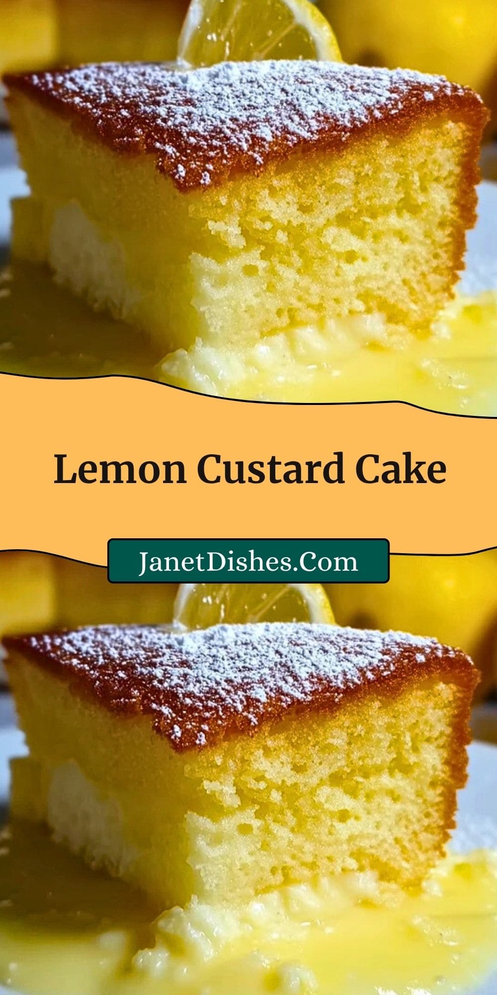 A bright and creamy Lemon Custard Cake made with fresh lemon juice and zest. This citrus dessert separates into a fluffy sponge top and a silky custard layer, perfect for spring brunches or elegant dinners. Easy to make with simple ingredients like eggs, milk, and lemon. Ideal for lemon lovers looking for a refreshing cake idea.
