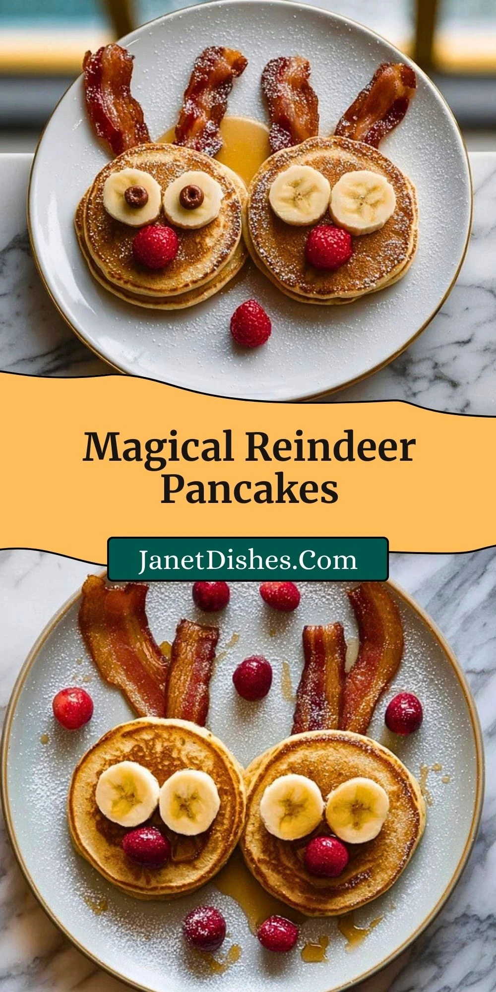 These toppings transform ordinary pancakes into playful reindeer faces, perfect for delighting little ones at the breakfast table.