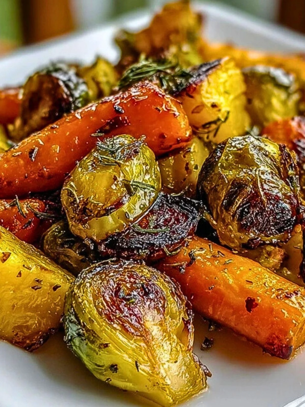 The beauty of this recipe is its versatility. You can mix and match your favorites or simply use what you have on hand. Sweet potatoes, carrots, parsnips, and Brussels sprouts all roast well and offer a nice contrast of colors and textures. Butternut squash and red onions are great additions too. Try to keep the pieces about the same size so they cook evenly, and aim for a mix of flavors: sweet, earthy, and a bit peppery.