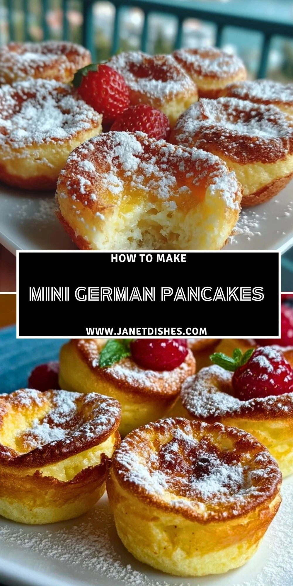 Mini German Pancakes are fluffy oven-baked bites with crispy edges and custardy centers, perfect for breakfast or brunch. Made in a muffin tin, this easy pancake recipe is customizable, quick, and kid-friendly. Try them with sweet or savory toppings for a delightful twist on classic pancakes.