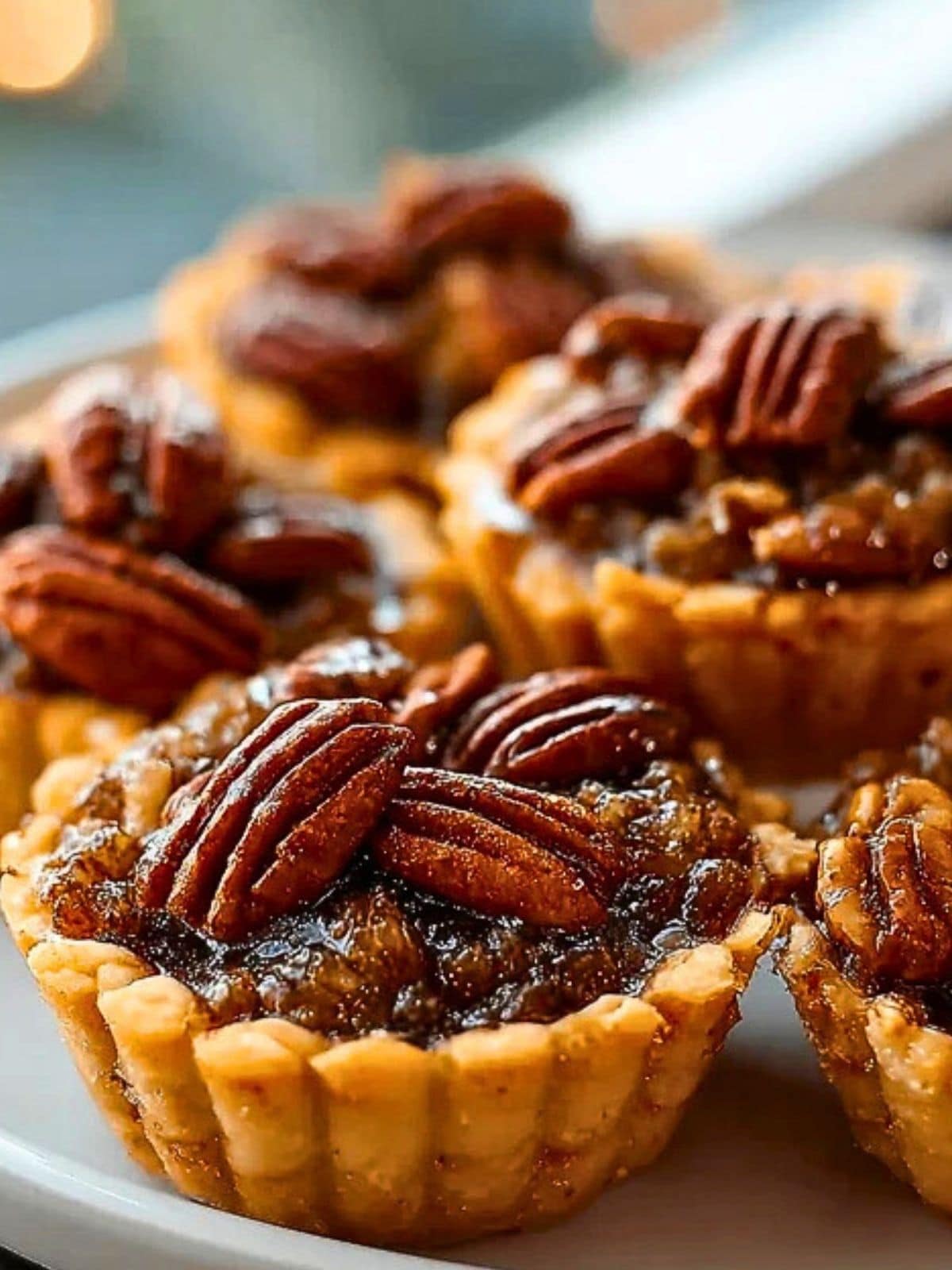 These mini pecan pies are best served slightly warm with a touch of whipped cream or vanilla ice cream. They also shine on dessert platters during the holidays, offering guests a small but satisfying bite without the need for slicing.