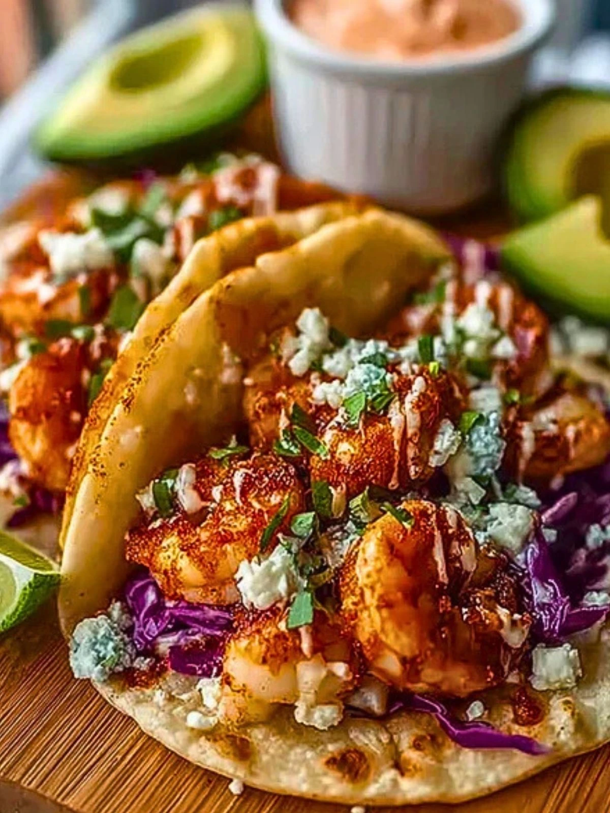 They’re best enjoyed fresh, right after assembling — that’s when the shrimp are still juicy and the tortillas slightly warm. If you have leftovers, store the shrimp and toppings separately in airtight containers. The cooked shrimp will last up to 2 days in the fridge. To reheat, a quick pan sauté is best to maintain texture. Tortillas can be wrapped in foil and warmed in the oven or on the stovetop.
