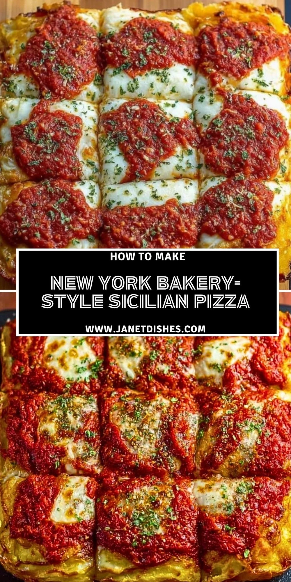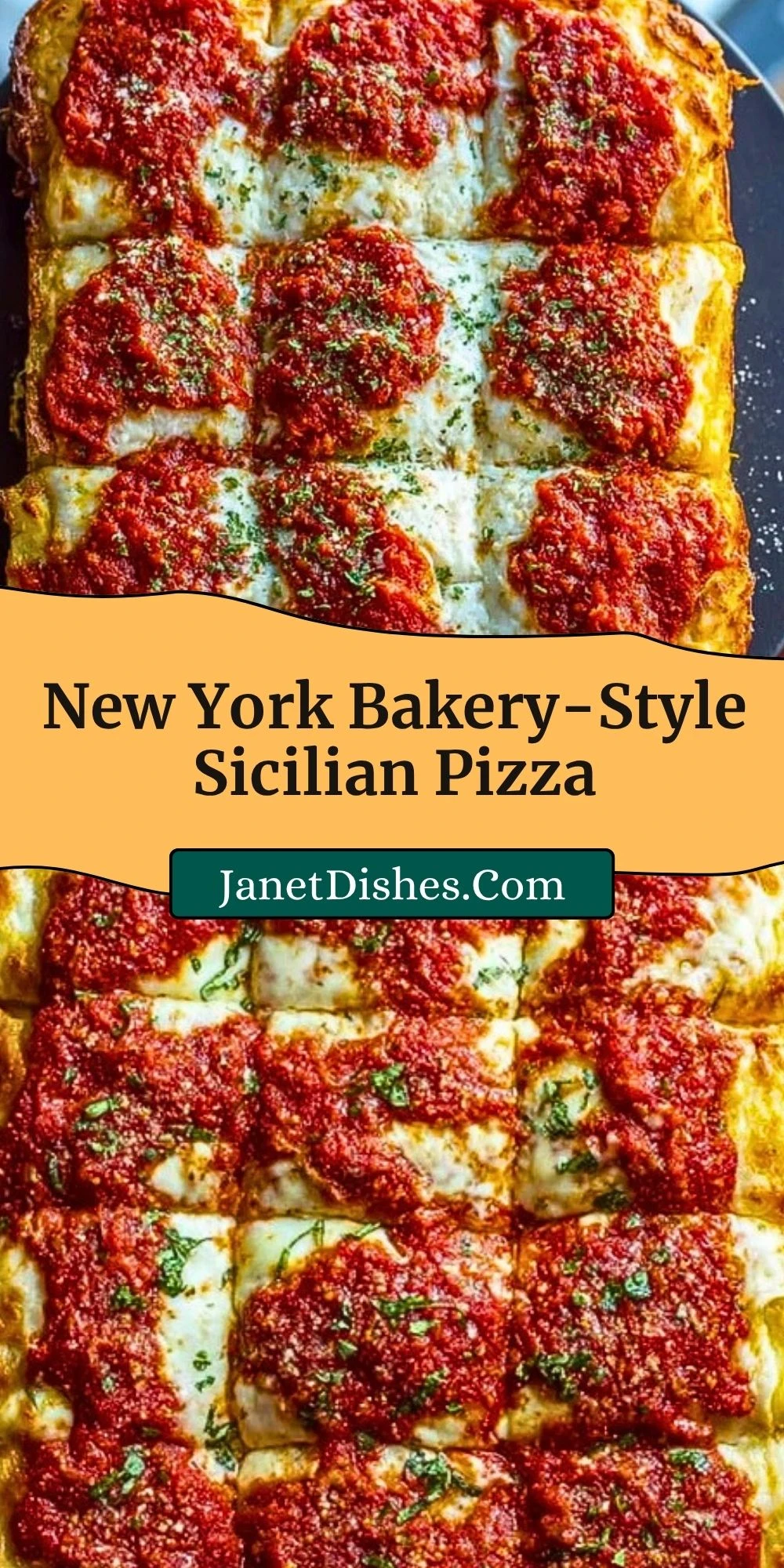 If you loved this New York Bakery-Style Sicilian Pizza, you might also enjoy a few other savory favorites from Janet Dishes. Homemade Mexican Pizza is great when you want something bold and layered. Pepperoni Pizza Tater Tot Casserole brings all the pizza flavors into a fun comfort food bake. Easy Homemade Naan Bread is perfect if you love working with dough and want another soft, bakery-style bread to try. One-Pan Garlic and Herb Pasta makes a great side or companion dish for an Italian-style dinner. Classic Caprese Salad is another fresh option that pairs beautifully with a warm square of pizza.