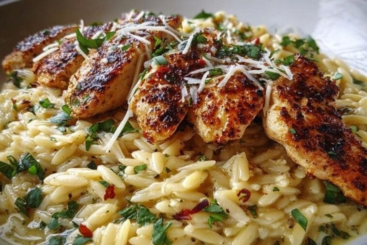 This easy Orzo Chicken recipe is a comforting one-pot meal made with tender chicken thighs, creamy orzo pasta, garlic, and lemon. Perfect for weeknight dinners, it’s quick, wholesome, and full of Mediterranean-inspired flavor. Great for meal prep or cozy family meals.