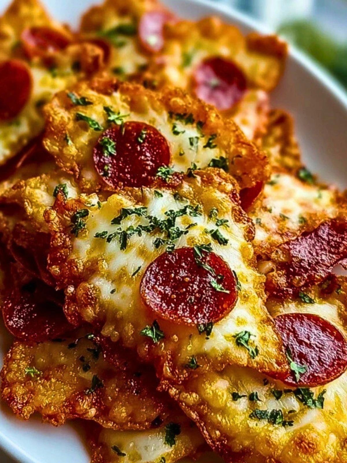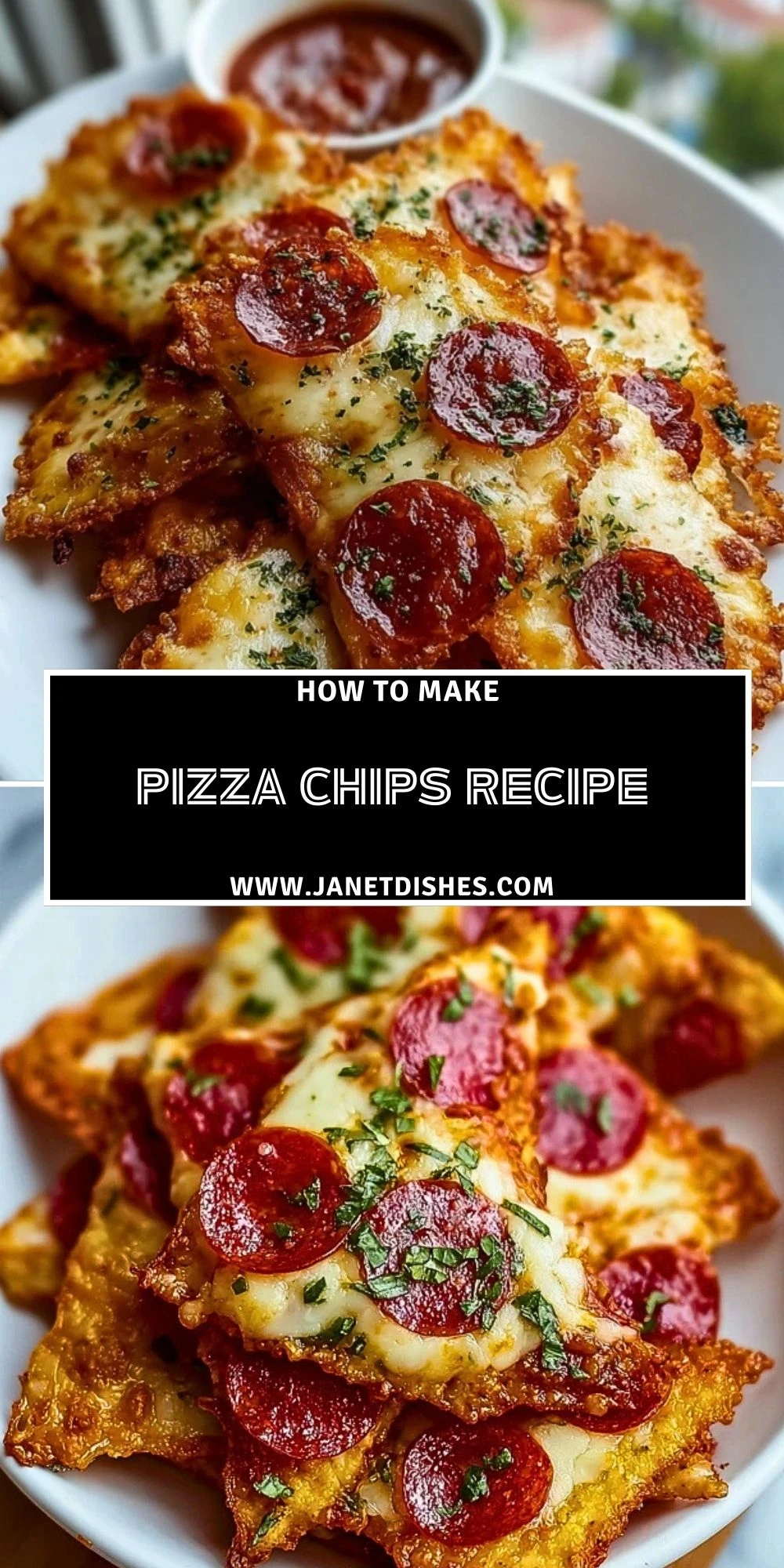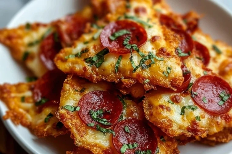 Crispy Pizza Chips recipe made with shredded mozzarella, pepperoni, and marinara for dipping. Perfect low-carb, keto-friendly snack or party appetizer with classic pizza flavor in chip form.