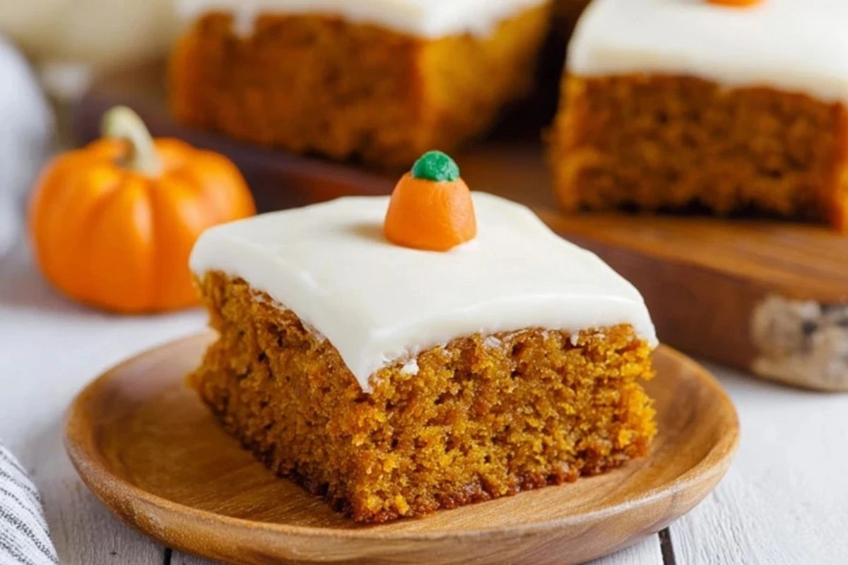 Moist and flavorful pumpkin bars with cream cheese frosting are the perfect fall dessert. Made with canned pumpkin, warm spices, and tangy frosting, these easy-to-make bars are ideal for sharing at parties or holiday gatherings. A must-try pumpkin dessert recipe.