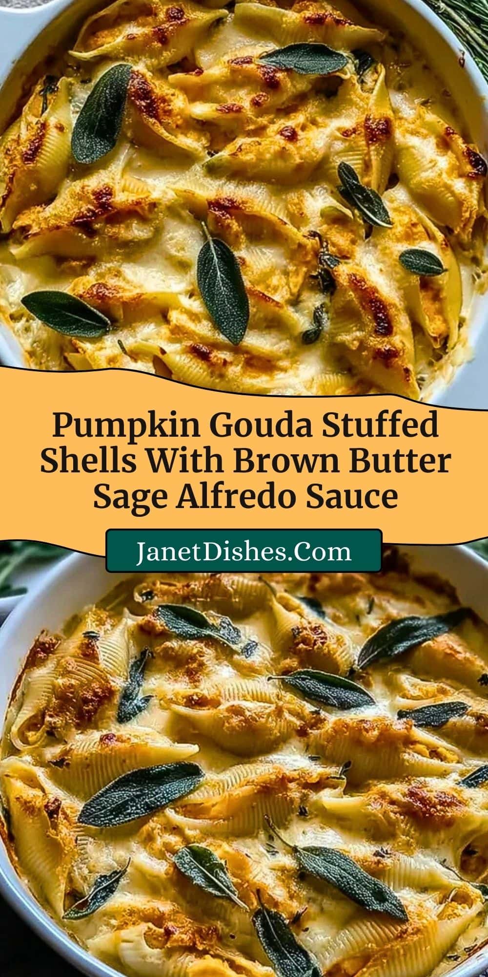 These Pumpkin Gouda Stuffed Shells with Brown Butter Sage Alfredo Sauce are a cozy fall dinner must-try. This stuffed pasta recipe combines creamy gouda, pumpkin puree, and a rich brown butter sage alfredo for a comforting vegetarian bake perfect for gatherings or a weeknight treat.