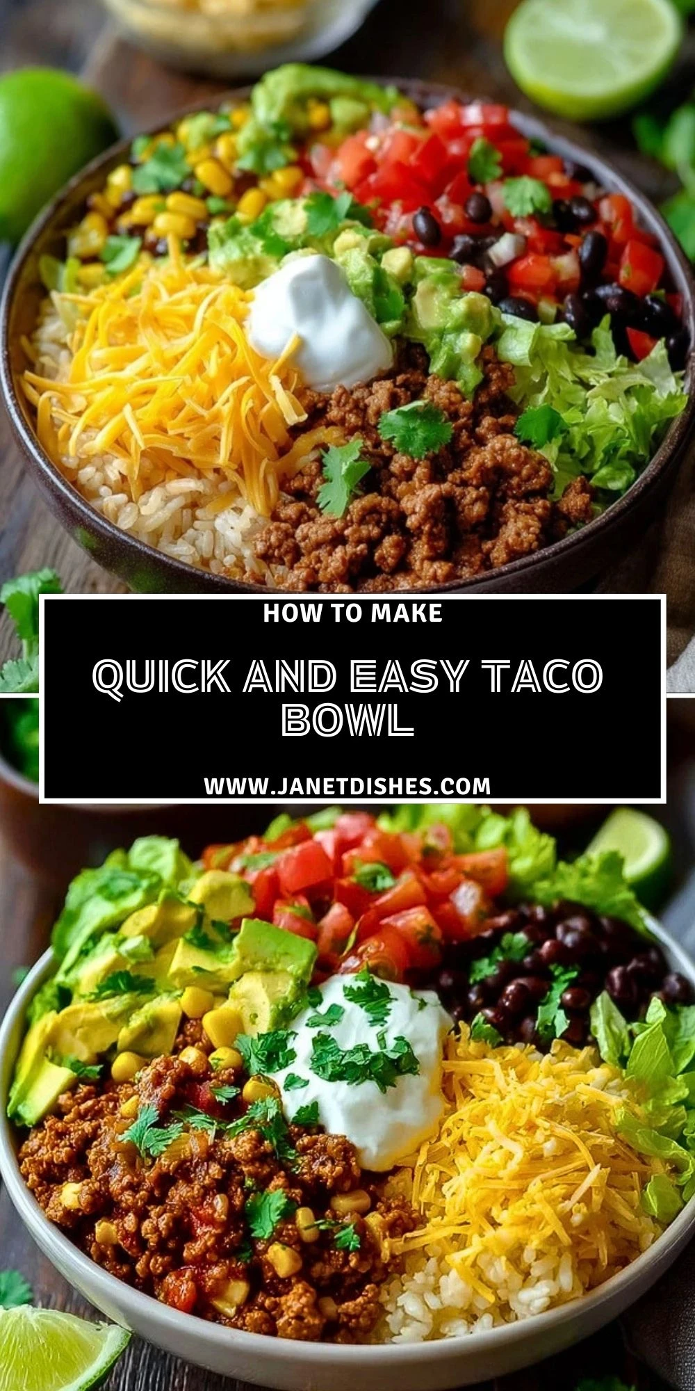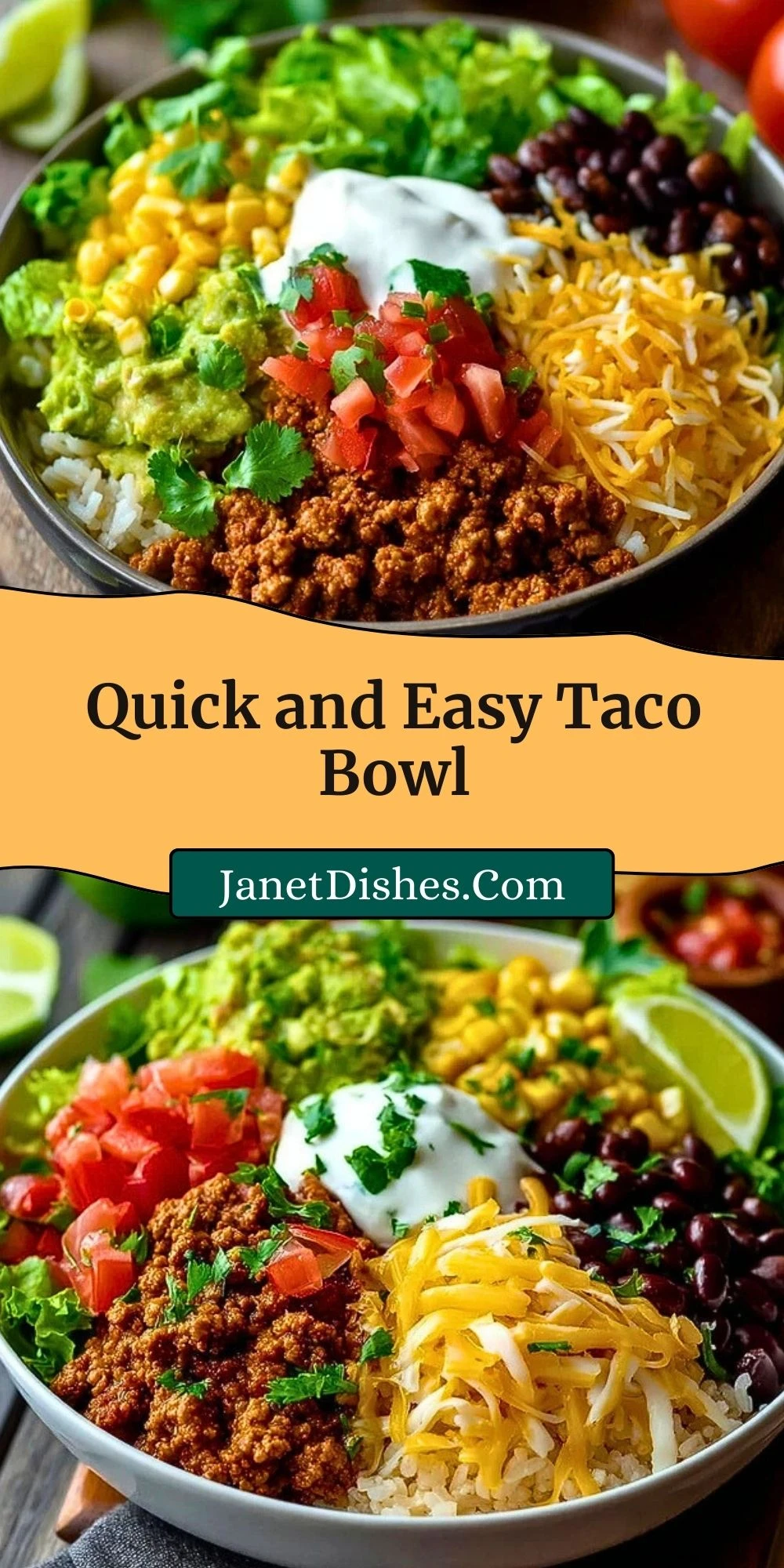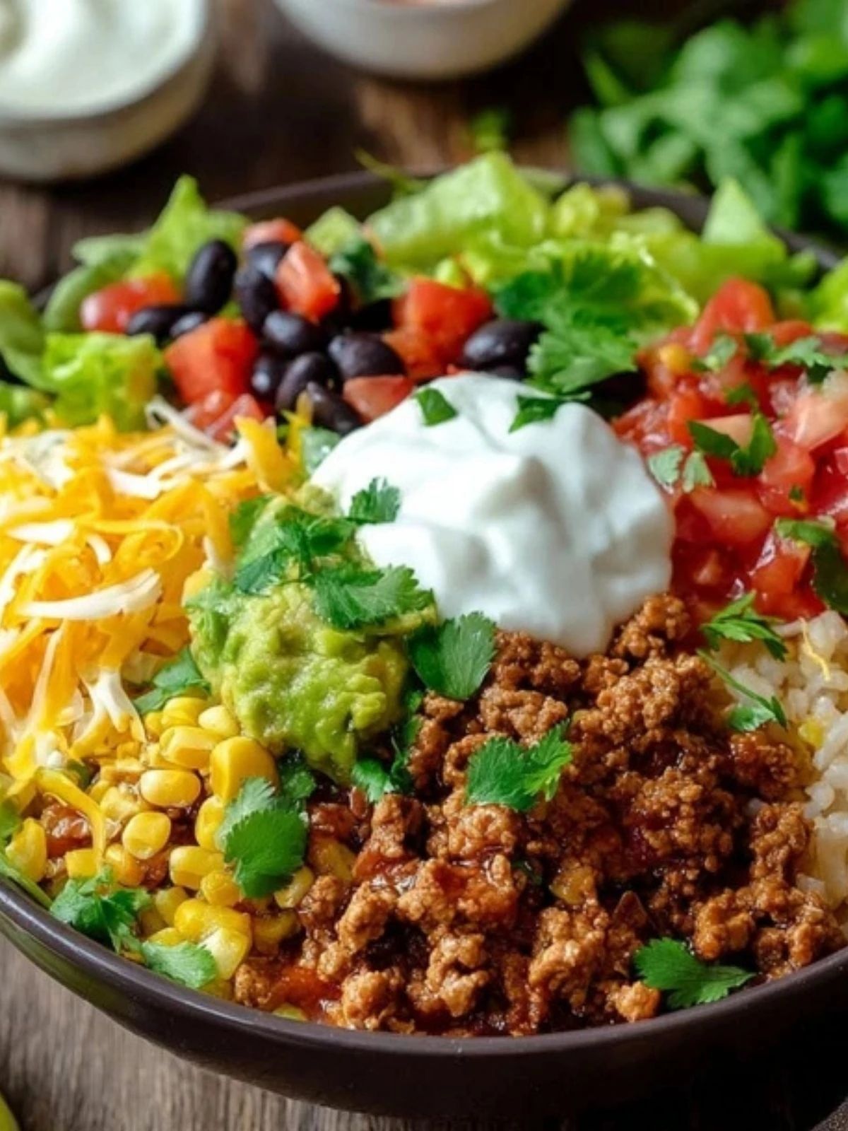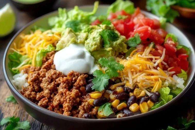 This quick and easy taco bowl recipe is a flavorful 20-minute dinner idea perfect for busy weeknights. Made with ground beef, rice, fresh toppings, and classic taco seasoning, it’s a customizable, budget-friendly, and deliciously satisfying meal. Great for families and meal prep!