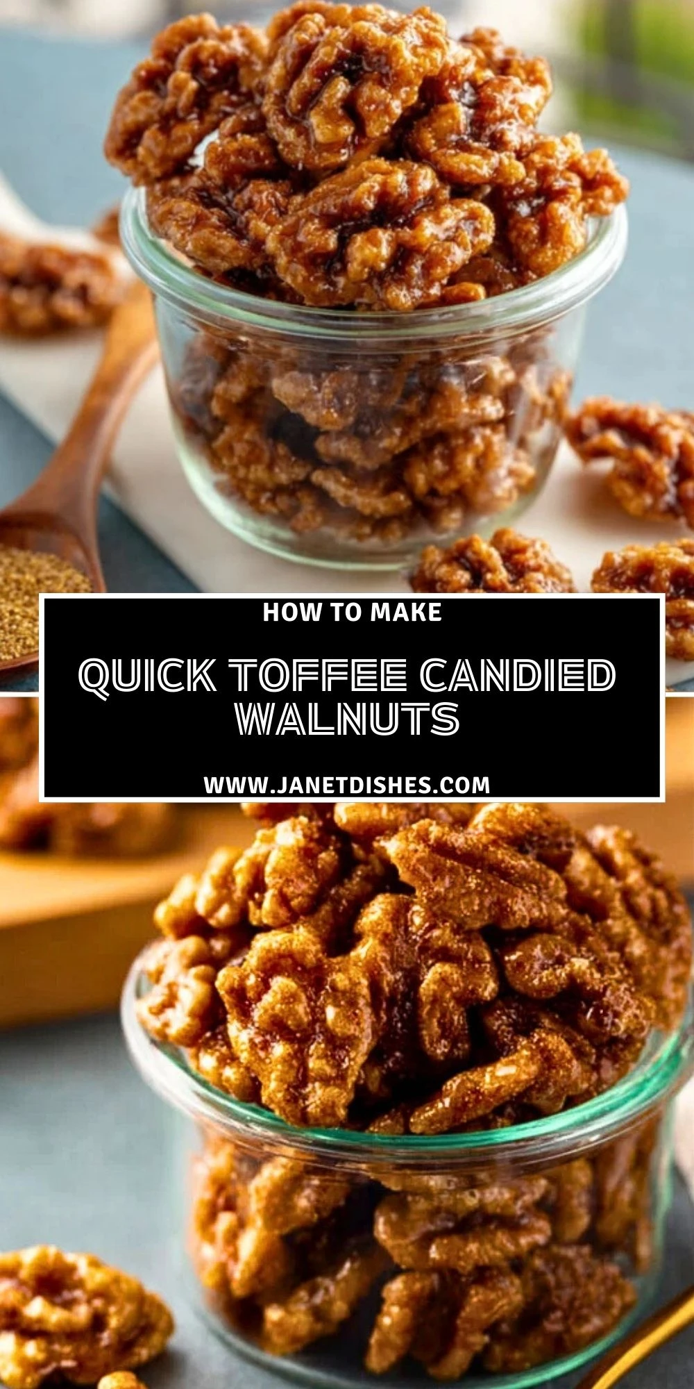 Quick Toffee Candied Walnuts are proof that a few simple ingredients can create something truly spectacular. In under 15 minutes, you can transform humble walnuts into glossy, golden nuggets of joy. Whether you’re topping a salad, gifting a jar, or snacking right from the pan, this is a recipe you’ll want to keep in your back pocket year-round.