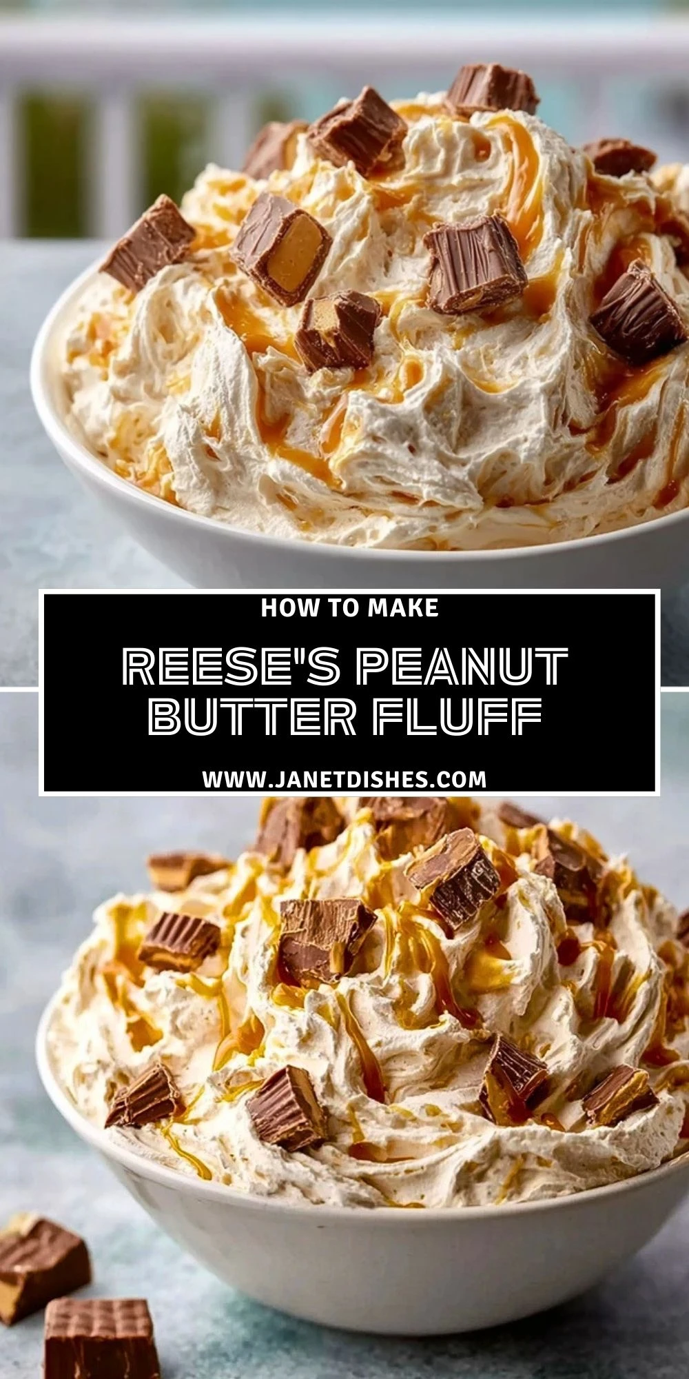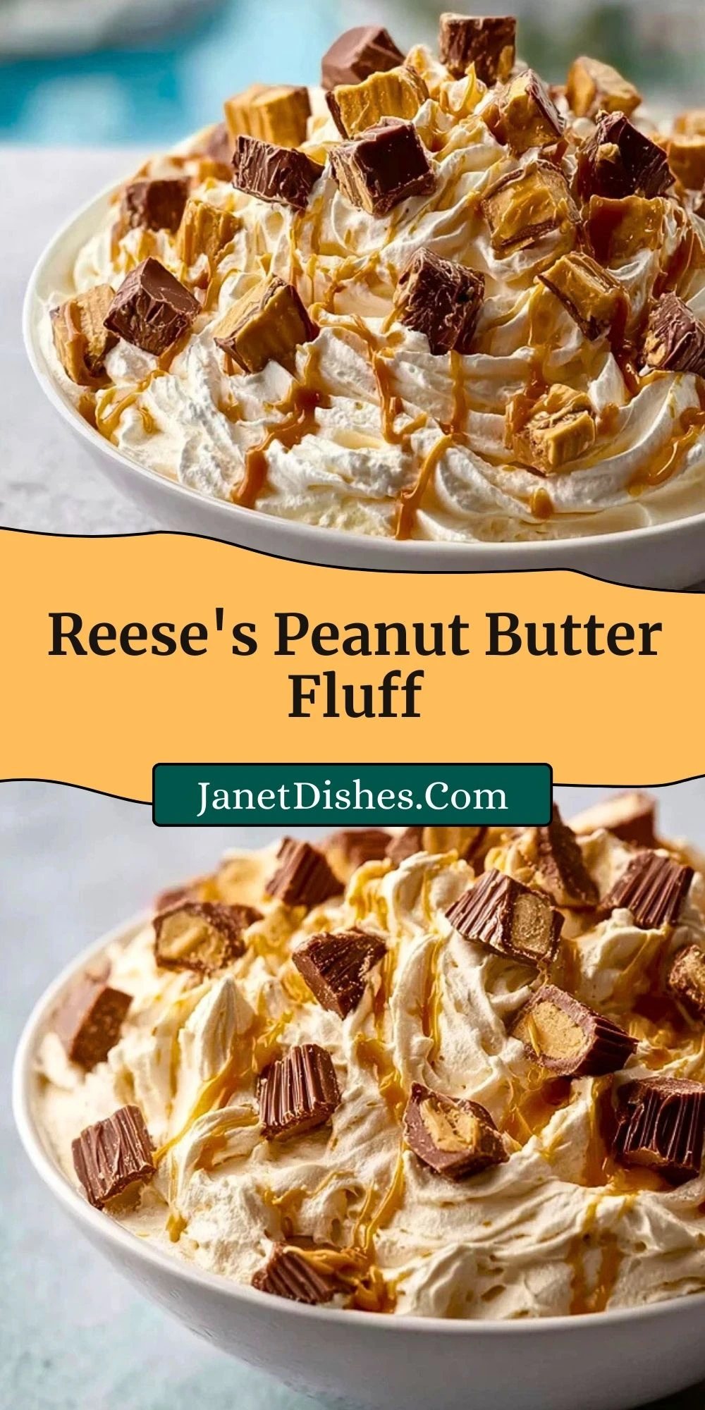Think of it as a peanut butter cloud, folded with whipped topping, mini marshmallows, and chopped Reese’s. Each bite is creamy, light, and rich in that unmistakable sweet-salty peanut butter goodness. It’s indulgent, playful, and just nostalgic enough to feel like a childhood treat turned grown-up favorite.