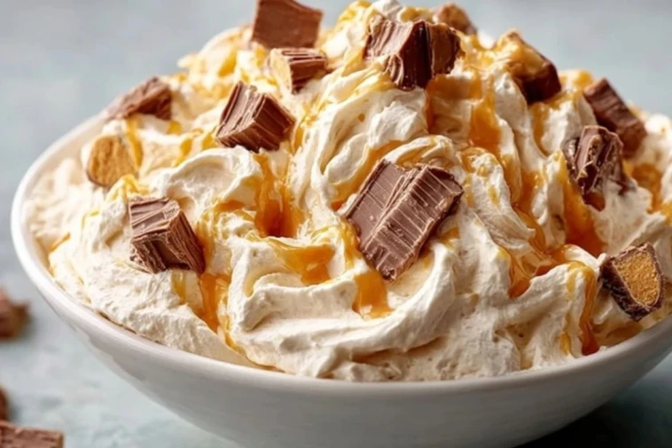 This easy Reese’s Peanut Butter Fluff recipe is a no-bake dessert made with cream cheese, peanut butter, whipped topping, mini marshmallows, and chopped Reese’s. Perfect for potlucks, parties, or a sweet treat with minimal effort. A rich, fluffy peanut butter dip everyone will love!