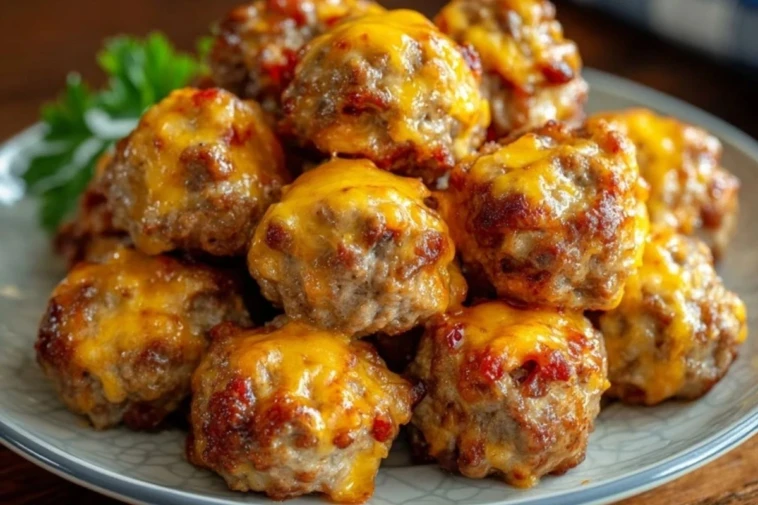 Let the sausage balls rest for 5 minutes before serving so the cheese sets a little and they’re easier to handle.