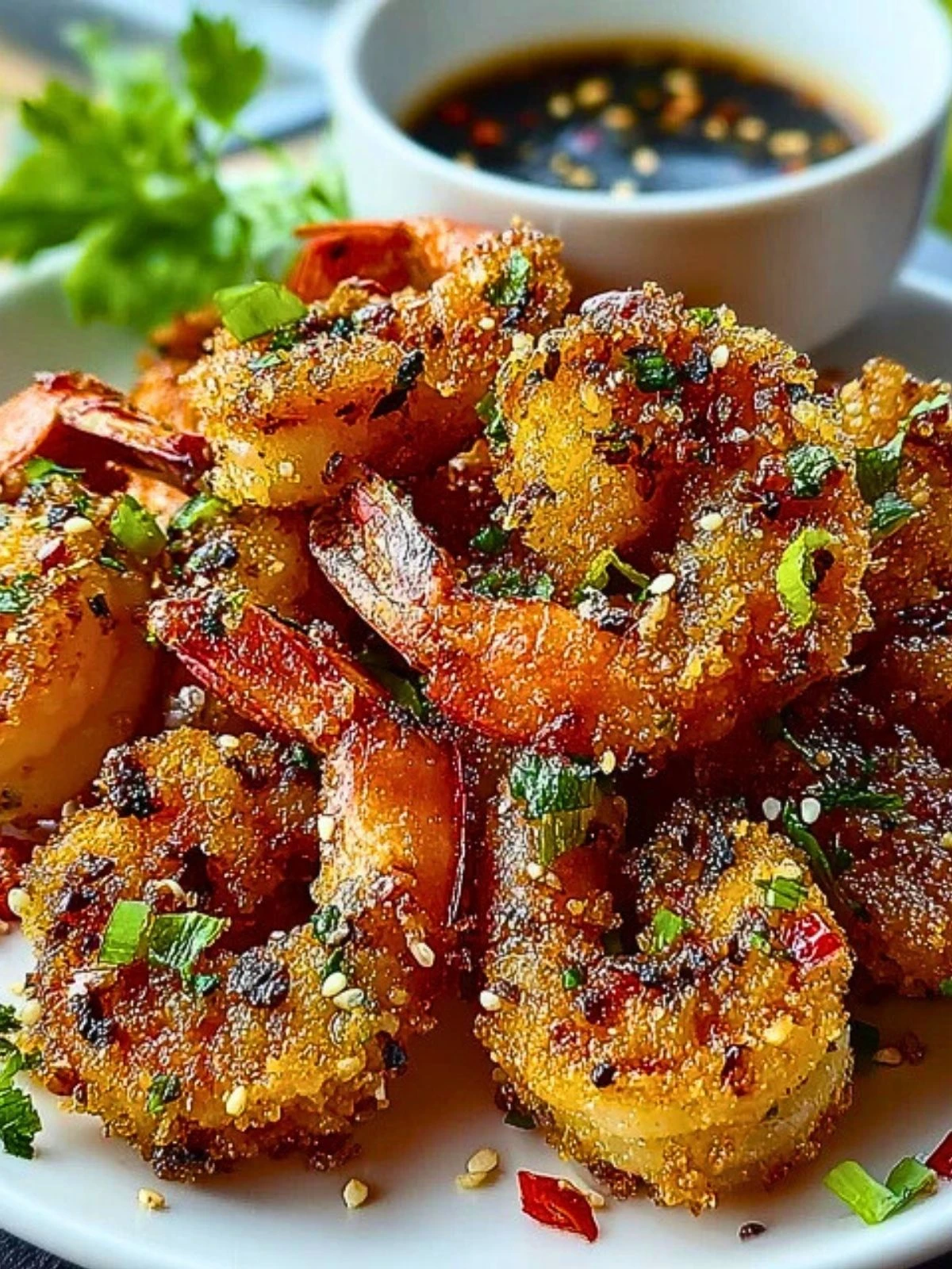 The magic lies in the contrast: the crispy crunch of the fried shrimp paired with the zing of fresh scallions and chili peppers makes every bite unforgettable. Served with a wedge of lime or a side of sweet chili sauce, these crispy shrimp don’t just deliver—they impress.