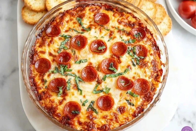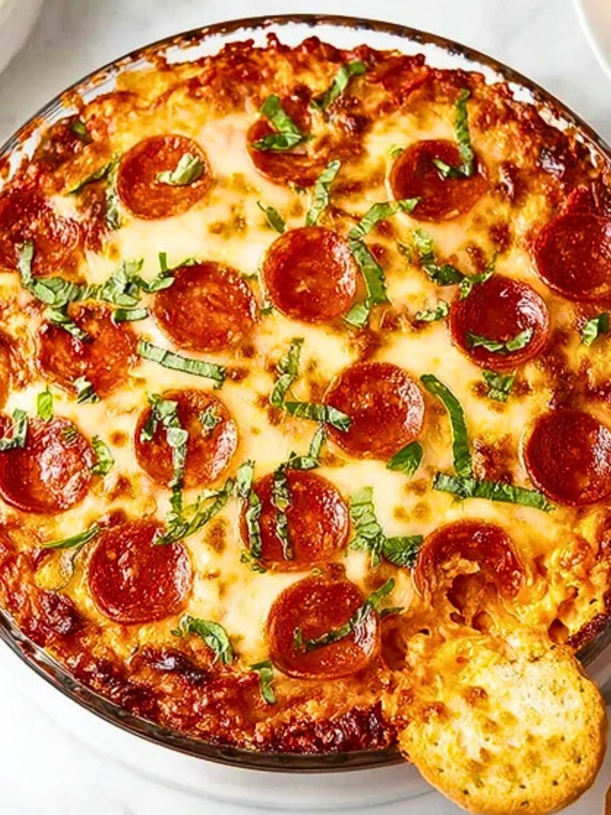 This Savory 5-Ingredient Pizza Dip is the ultimate party appetizer made with cream cheese, mozzarella, pizza sauce, pepperoni, and Italian seasoning. It’s a cheesy, crowd-pleasing dip that tastes just like pizza without the crust. Perfect for game days, gatherings, or easy weeknight indulgence.