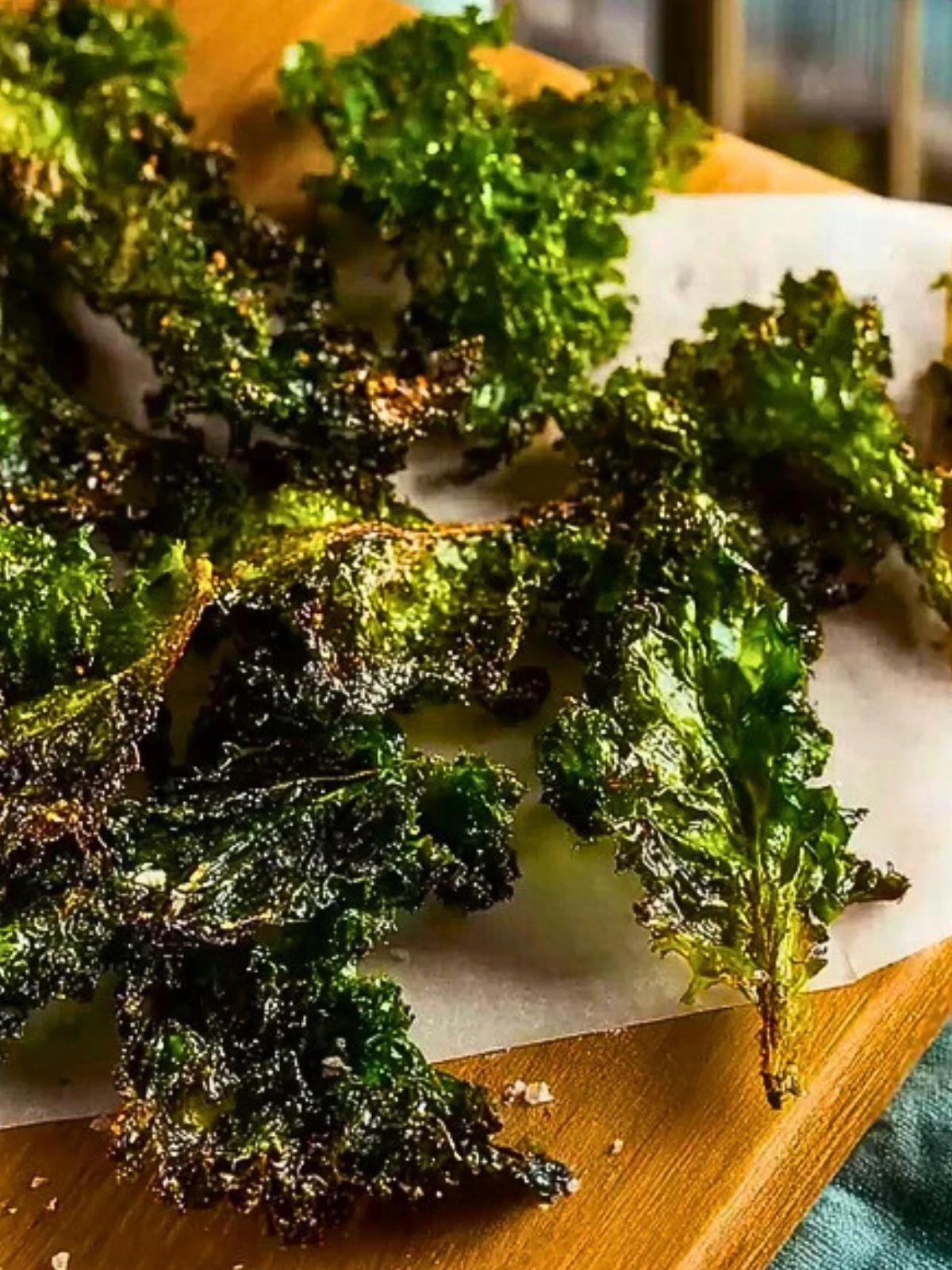 These kale chips are best enjoyed fresh, straight from the oven while they’re still warm and crunchy. However, they’ll keep well in an airtight container at room temperature for up to 2 days. Just be sure they’re fully cooled before storing to avoid sogginess.