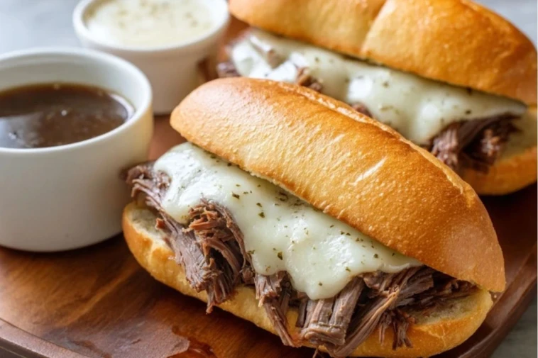 Slow Cooker French Dip Sandwiches are the ultimate comfort food. Made with tender chuck roast, rich beef broth, melted provolone, and crusty hoagie rolls, this slow cooker meal is juicy, flavorful, and effortless. A perfect weeknight dinner or game day favorite with savory au jus for dipping.