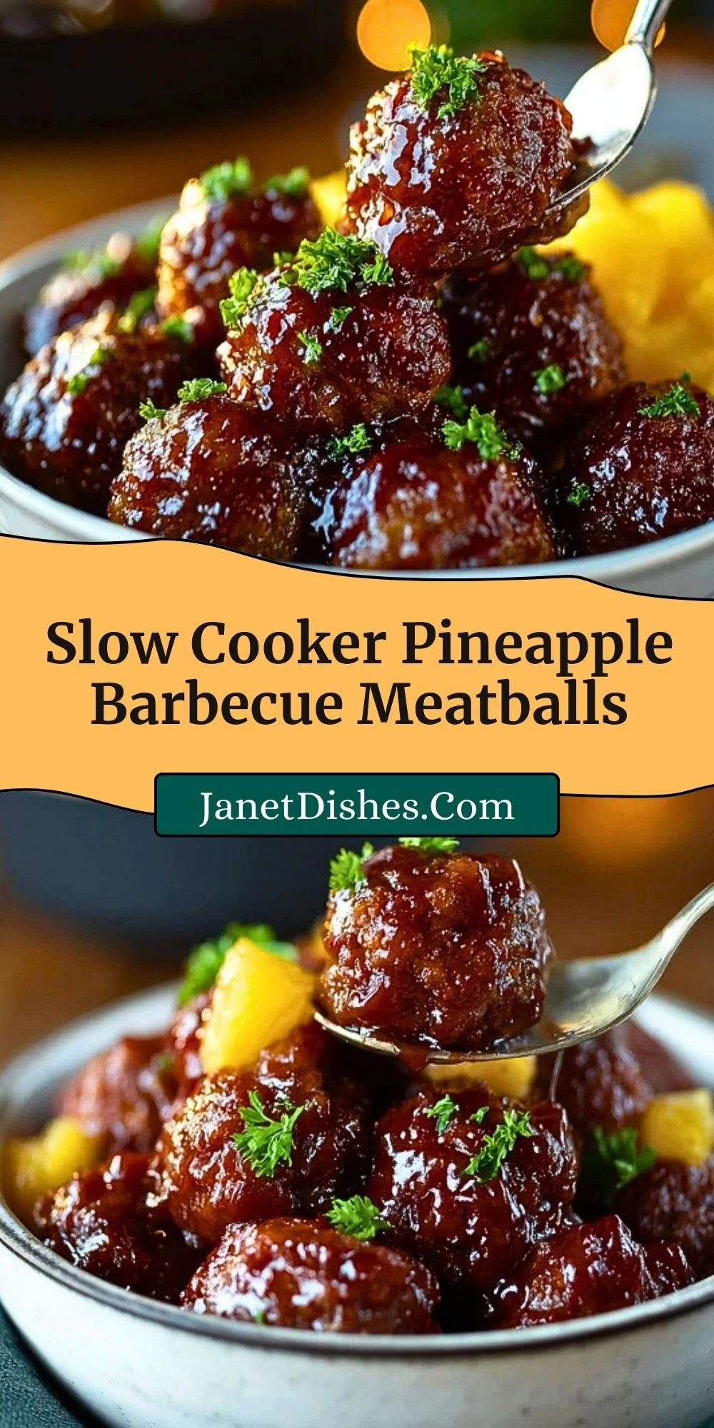 These slow cooker pineapple barbecue meatballs are a sweet, tangy, and savory favorite made with frozen meatballs, pineapple, and barbecue sauce. Perfect as an appetizer, potluck dish, or easy weeknight dinner. Crockpot pineapple meatballs, party meatball recipe, sweet and sour meatballs.