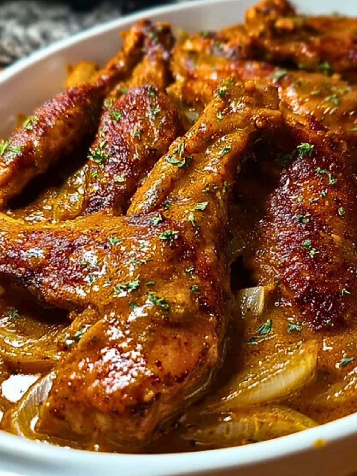 The wings are the star, seasoned with simple spices to let their natural flavor shine. Onion and garlic powder bring aromatic depth, while paprika adds color and warmth. A good drizzle of oil helps them brown beautifully. Sliced onions cook down into the gravy for that signature richness, and the flour and broth blend into a creamy, luscious sauce that soaks into every bite.