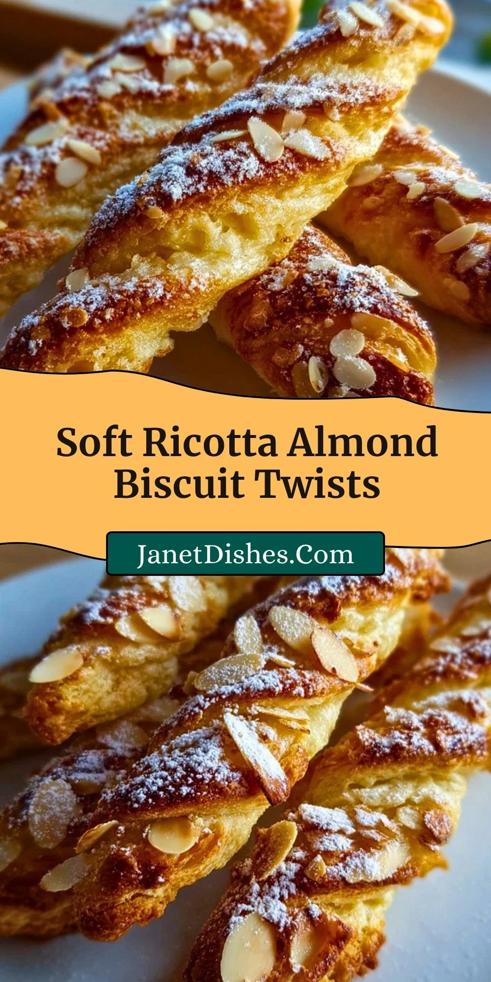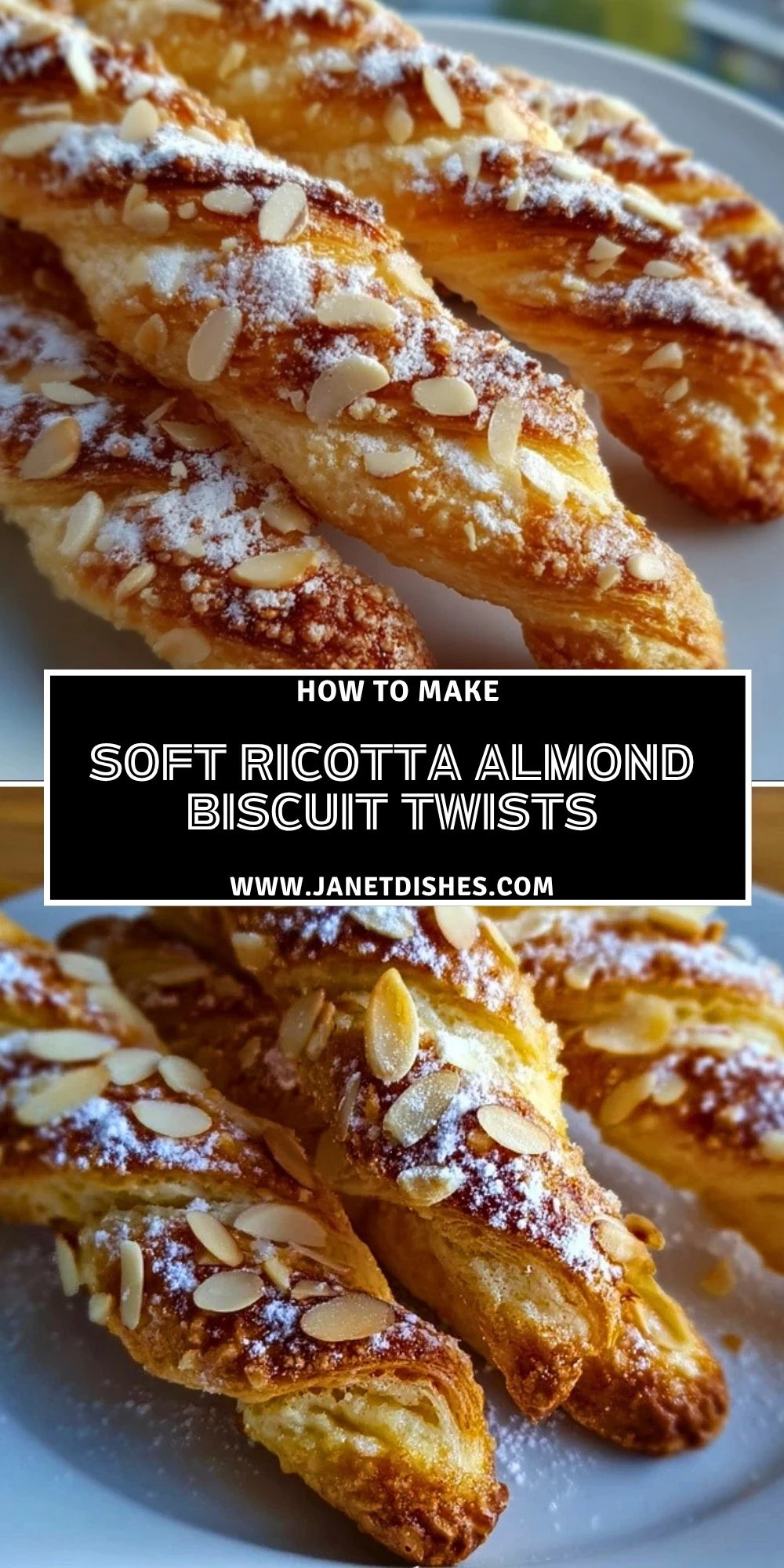 If you love soft, bakery-style sweets like these Soft Ricotta Almond Biscuit Twists, you might enjoy a few more favorites from Janet Dishes. For something buttery and delicate, try Classic French Butter Cookies. If you want a bright citrus finish, Lemon Truffles Recipe is a lovely option. For a soft and fruity treat, Strawberry Shortcake Cheesecake Rolls bring a creamy dessert twist. And if you are in the mood for a cozy cake, Carrot Pound Cake with Vanilla Glaze is always a comforting choice. You could also bake Churro Cheesecake Donut Cookies when you want something playful and extra rich.